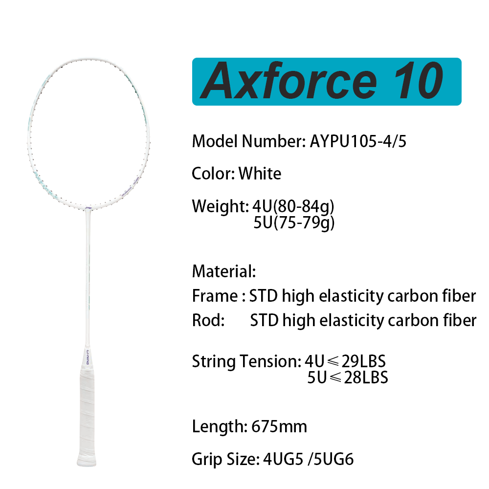 Li Ning(100% Original) badminton racket genuine Axforce 10 men's and women's all carbon fiber ultra light entry-level attacking type 4U/5U