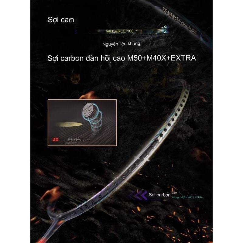 Li-Ning AXFORCE 100 Badminton Racket Max Stretch 13kg Carbon Frame + Free Handle and Carrying Case