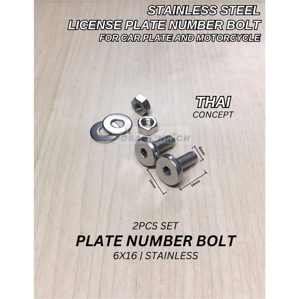 License Plate Number Bolt M6 Stainless Steel Universal Fit Wide Head