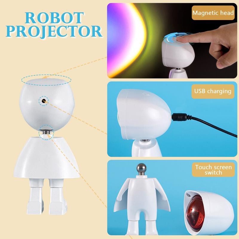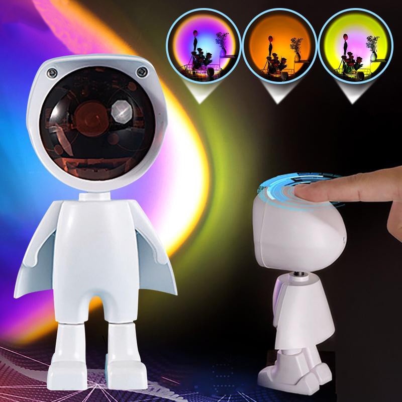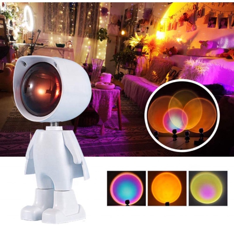 Licer Astronaut Robot Sunset Lamp USB Rechargeable Stepless Dimming Projection Lamp Romantic Creative Atmosphere Fill Projection Lights