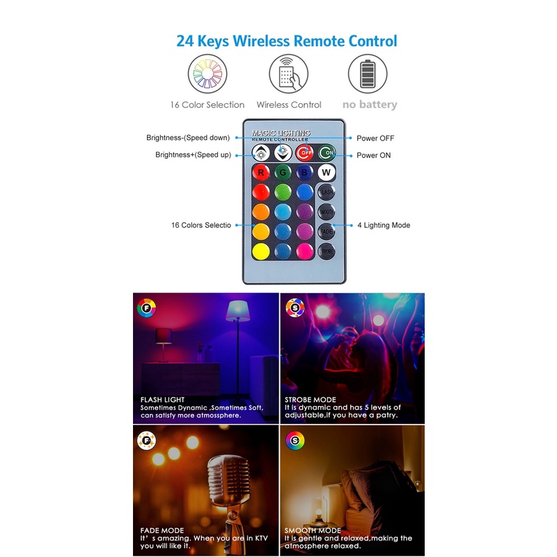 Licer LED RGB Bulb Light 4 Modes Dimmable Remote Control Color Bulb Smart Fill Light Atmosphere Light Beautify Lamp LED Night Light Bedside Lamp 5W 10W 15W E27 Socket