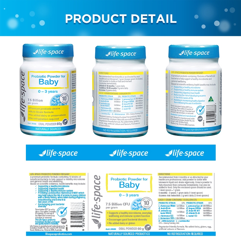 Life Space Bundle Set Kids Baby Probiotic Powder 0-36 Months 60g*2 Lactobacillus Prebiotics LSP029-2