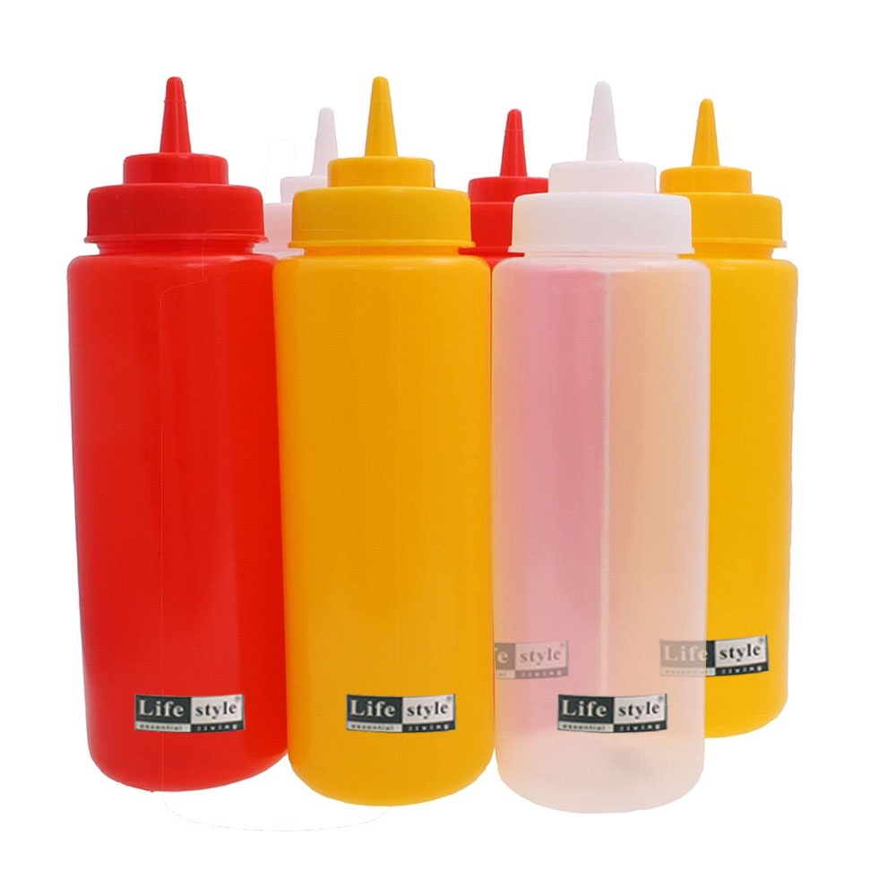 Lifestyle Squeeze Dispenser Condiments Bottle Kitchen Organizer ( Set of 4 ) 24oz ( Assrtd Color)