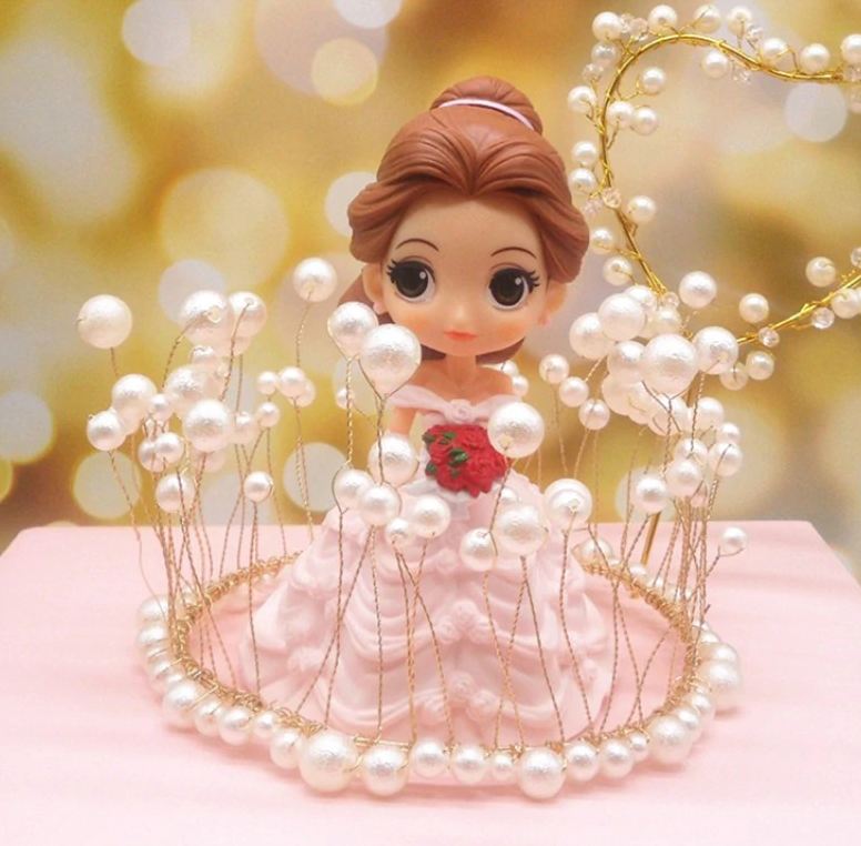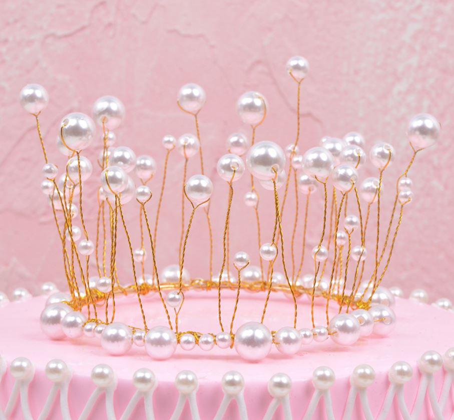 Light LED Lamp CakeTopper Pearl Princess Crown Cake Topper Happy Birthday Cake Decoration DIY Party Wedding Party Decor