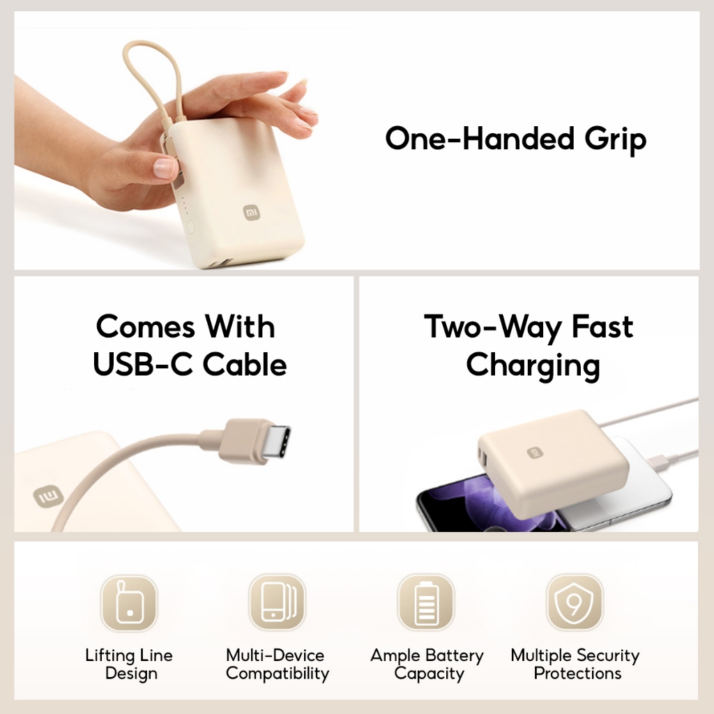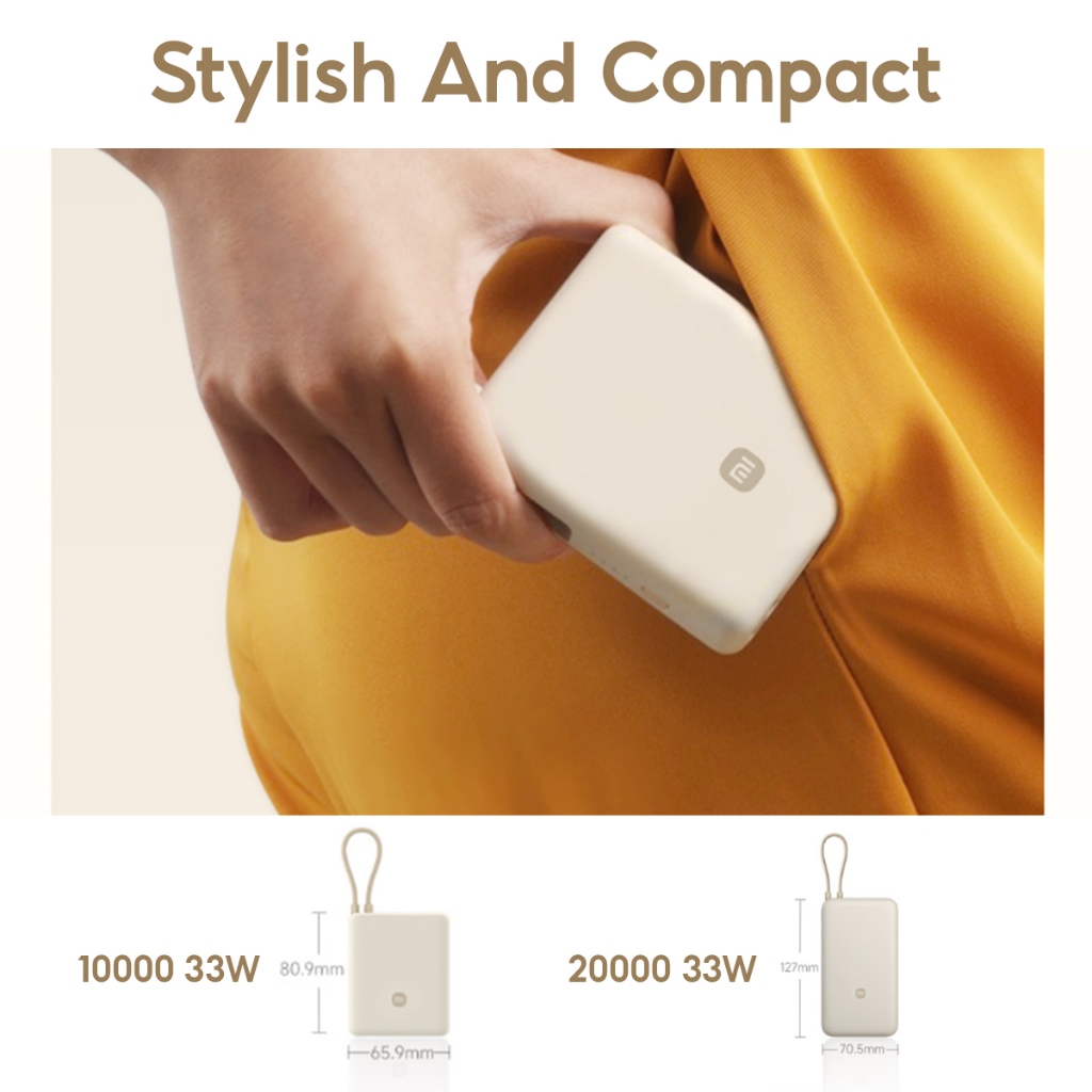 Xiaomi 33W Power Bank 10000mAh Integrated Cable Portable Two-Way Fast Charging For Rainy Season