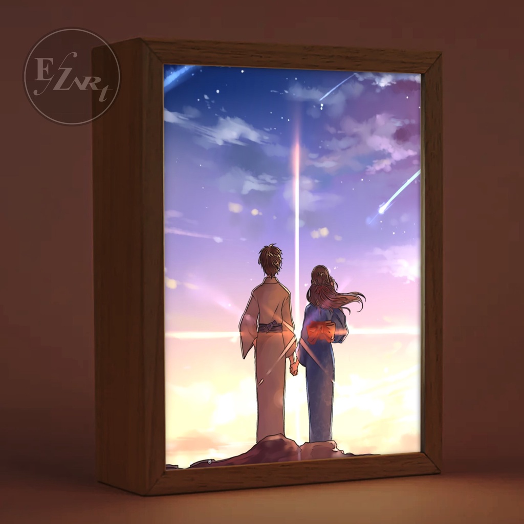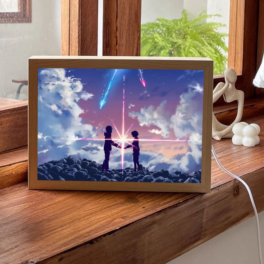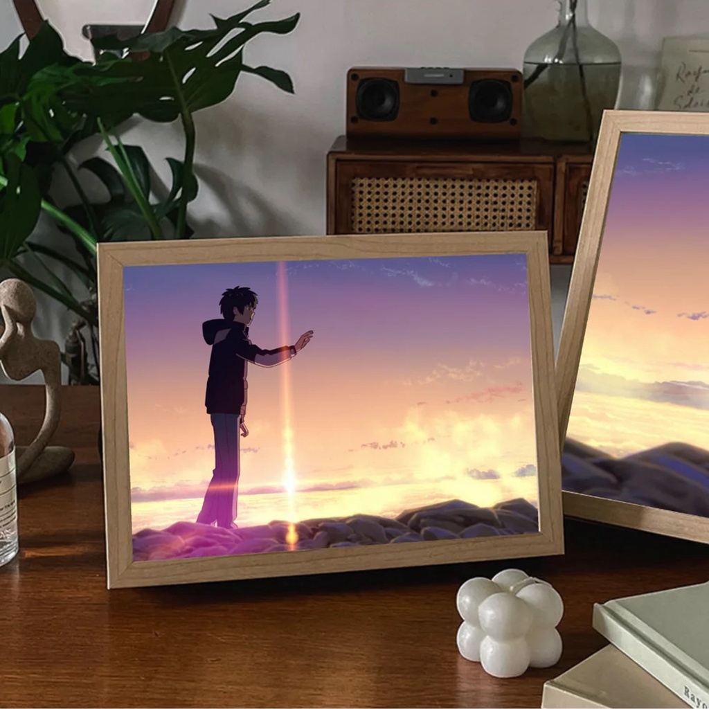 Light Painting Anime Edition Kimi No Nawa Your Name Light Frame Display Frame Aesthetic Room Wall Table Decoration Suitable as a Unique Viral Gift