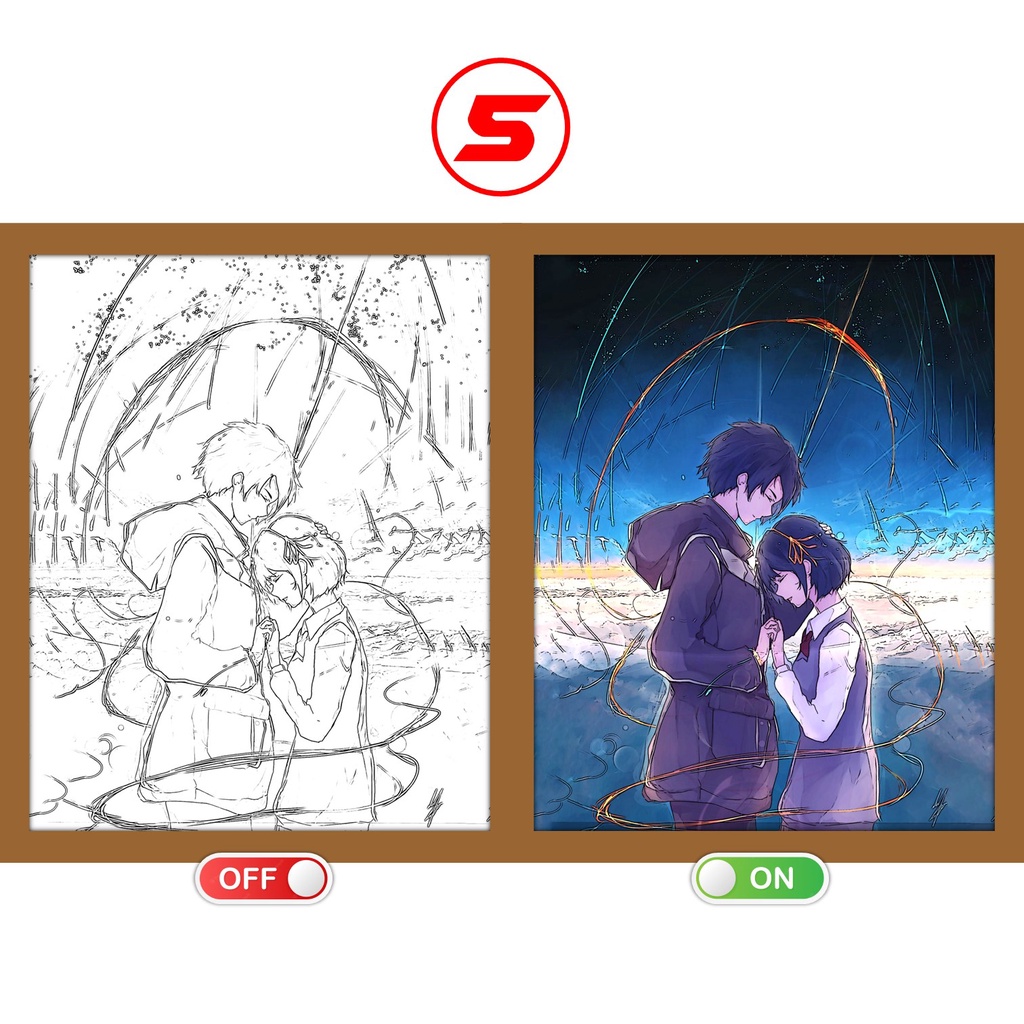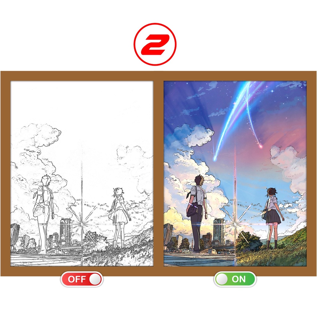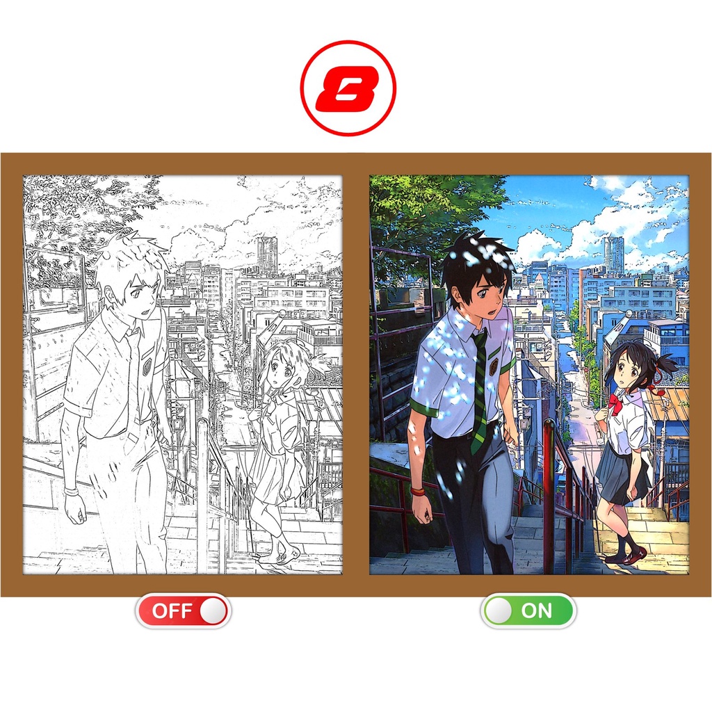 Light Painting Anime Edition Kimi No Nawa Your Name Light Frame Display Frame Aesthetic Room Wall Table Decoration Suitable as a Unique Viral Gift