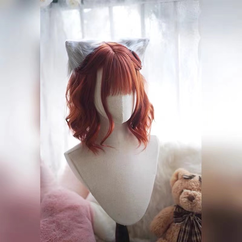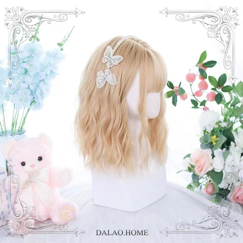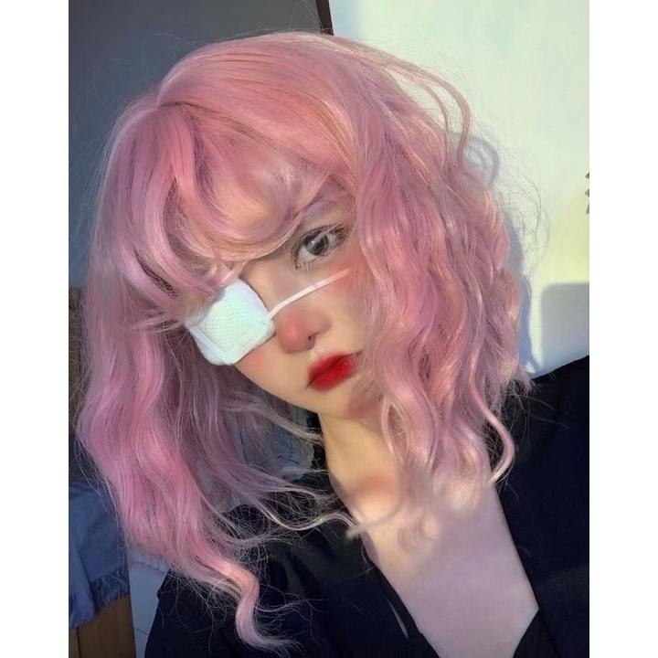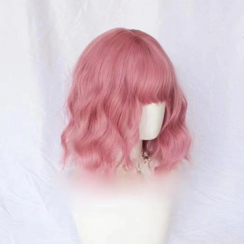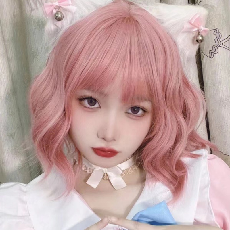 Light Pink Color Short Curls Wigs For Women Cosplay Living Streaming Hairsyle Tools Full Head Realistic Synthetic Hair Lolita