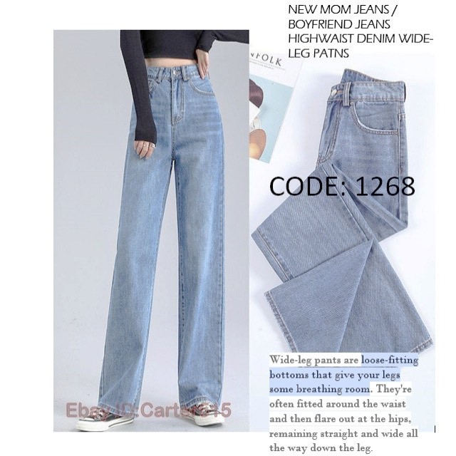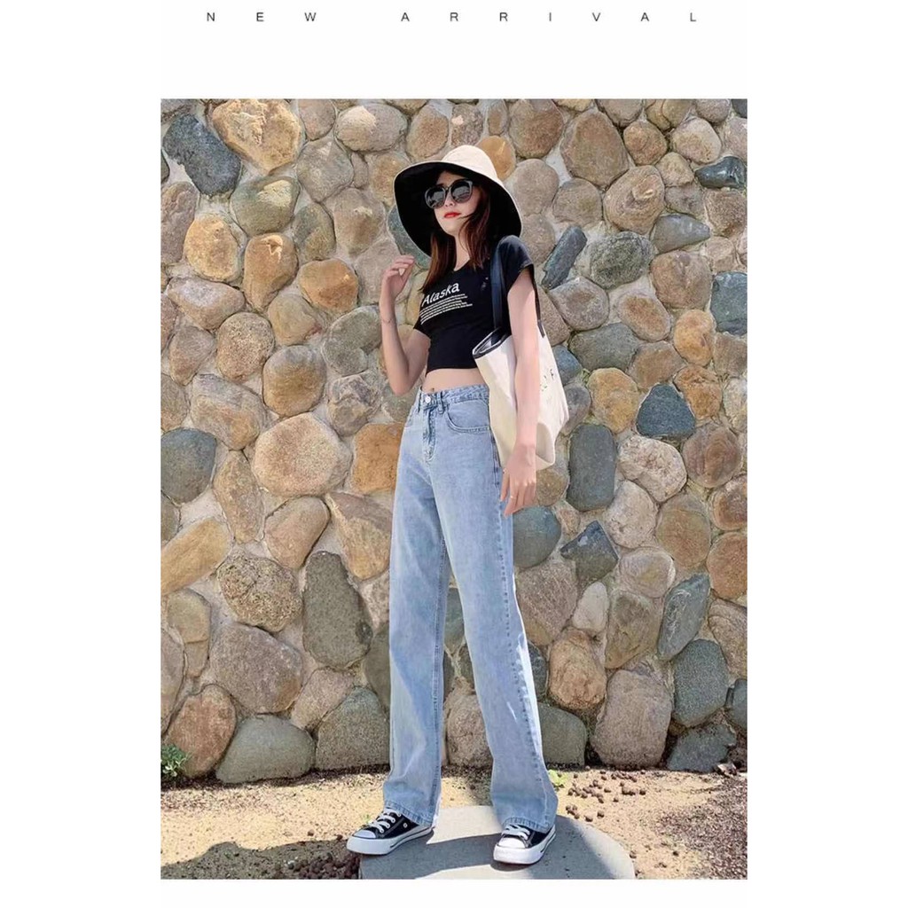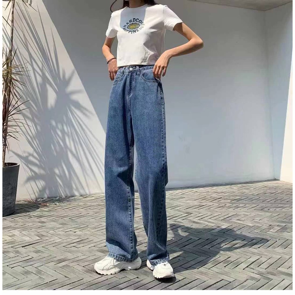 High Waist Straight Wide Leg FLOOR JEANS Denim Pants 5Color's Size:S-3XL