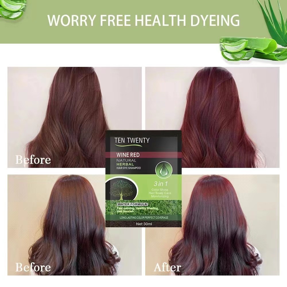 TEN TWENTY Natural Black/Chestnut-Brown/Red Herbal Hair Dye shampoo Color hair Fast Harmless 30ml/pc