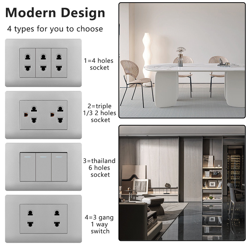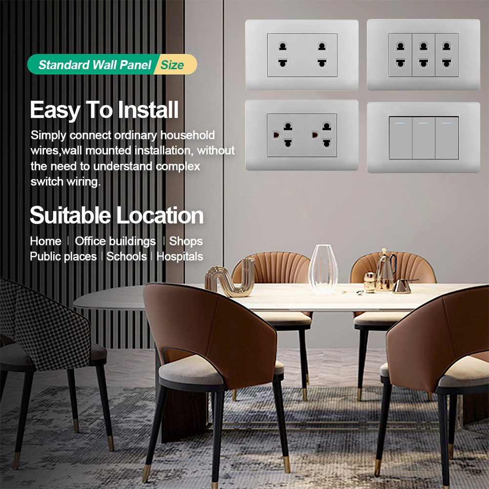 Light Switch And Outlet 1/2/3/4 Gang Modern Wall Mounted Light Switch Universal Multiple Socket Rectangle