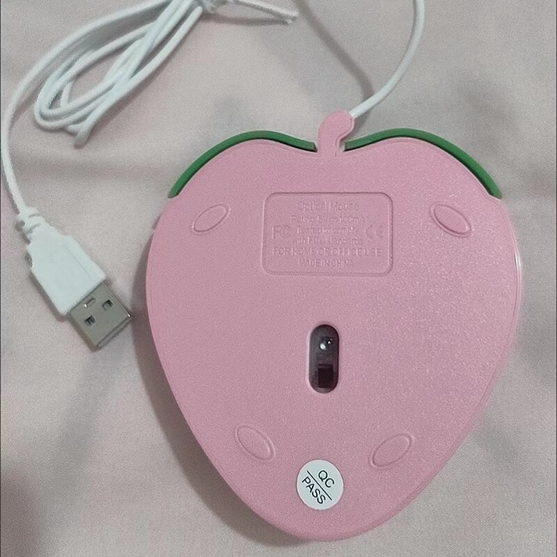 Light USB Wired Mouse Cute Fruit Strawberry Shape Portable Mini Optical Mice Cartoon Computer Mouse 3 Buttons for Laptop Desktop PC Notebook