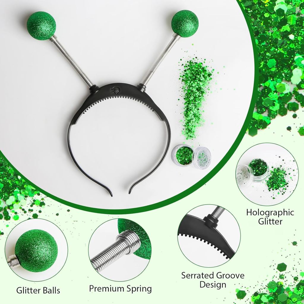 Light Up Alien Headband - Halloween Alien Headband Martian Headband Led Headband Martian Antenna Ball with Face Glitter (Green)