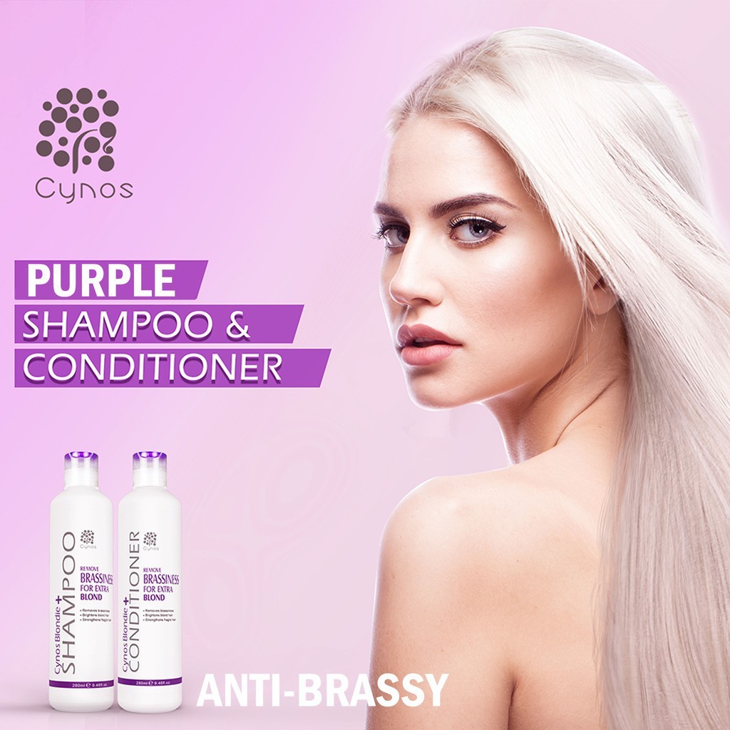 [With Freebie] Cynos Blondie Anti-Brassy Purple Shampoo and Conditioner Set 280ml