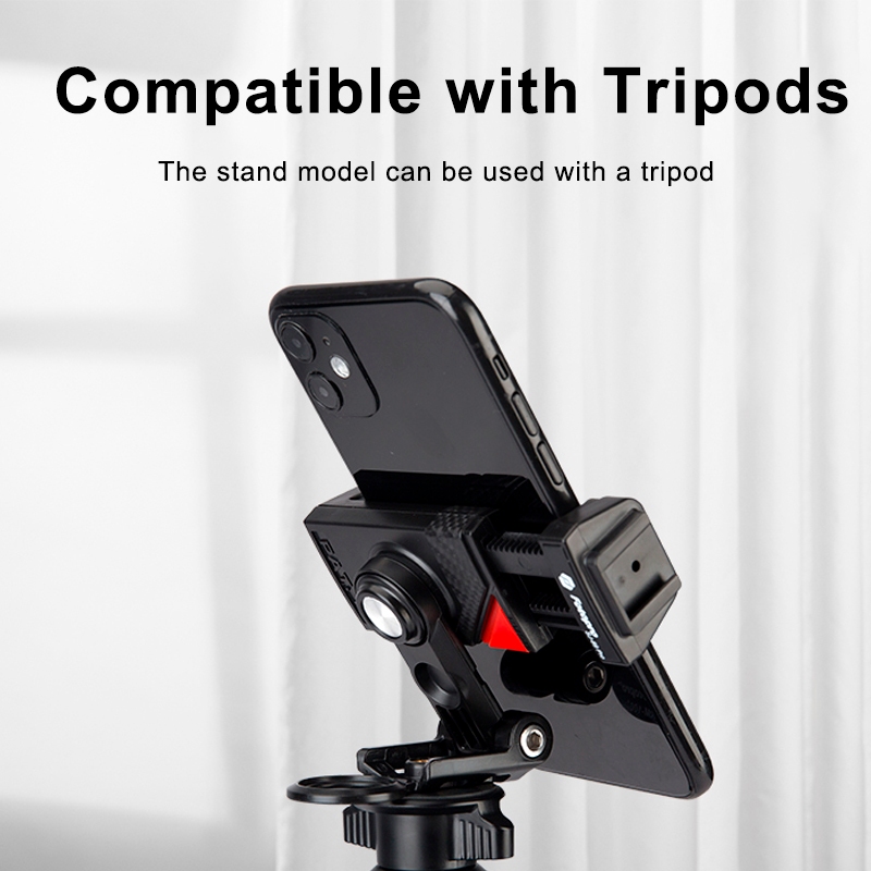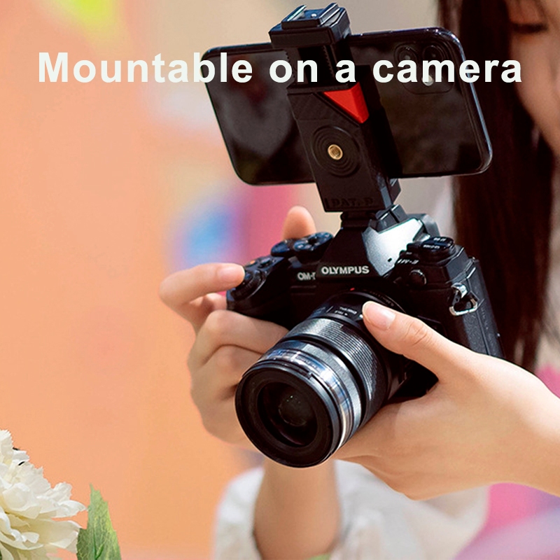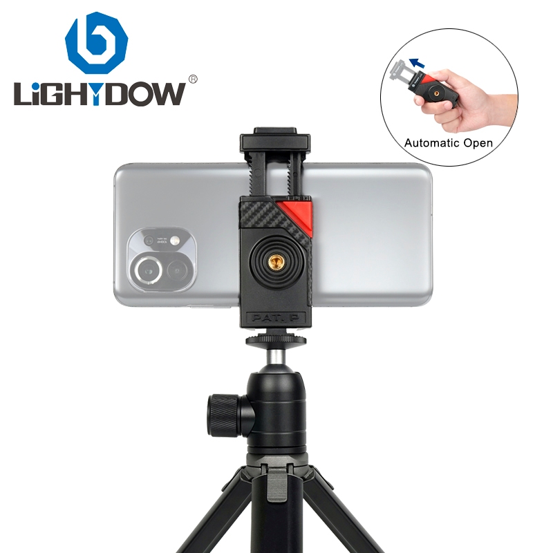 Lightdow Tripod Phone Holder with Safe Automatic Phone Clamp, Camera Cold Shoe and Phone Stand Multi-Function Phone Clip, Compatible with Tripods and DSLR Cameras