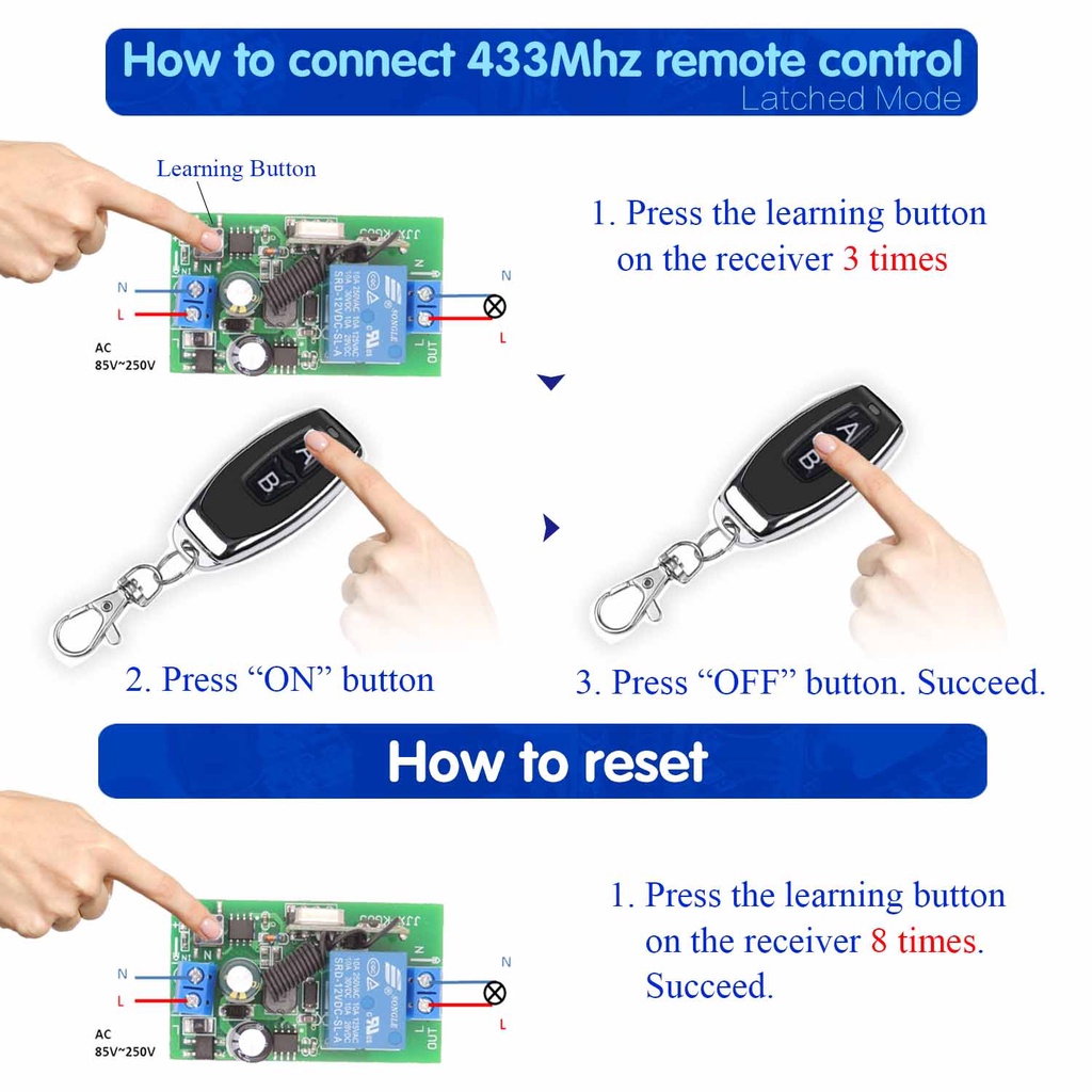 Lighting Remote Control Switch 110V 220V 2200W 433Mhz Rf Switch Relay Receiver And Transmitter For Led Control On/Off