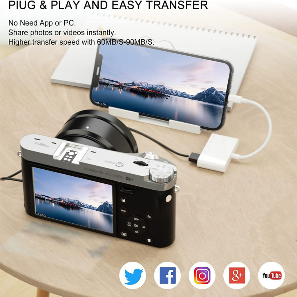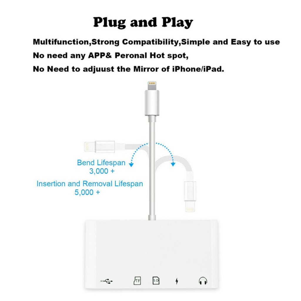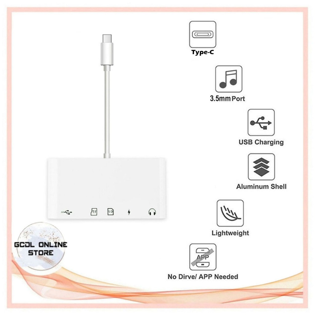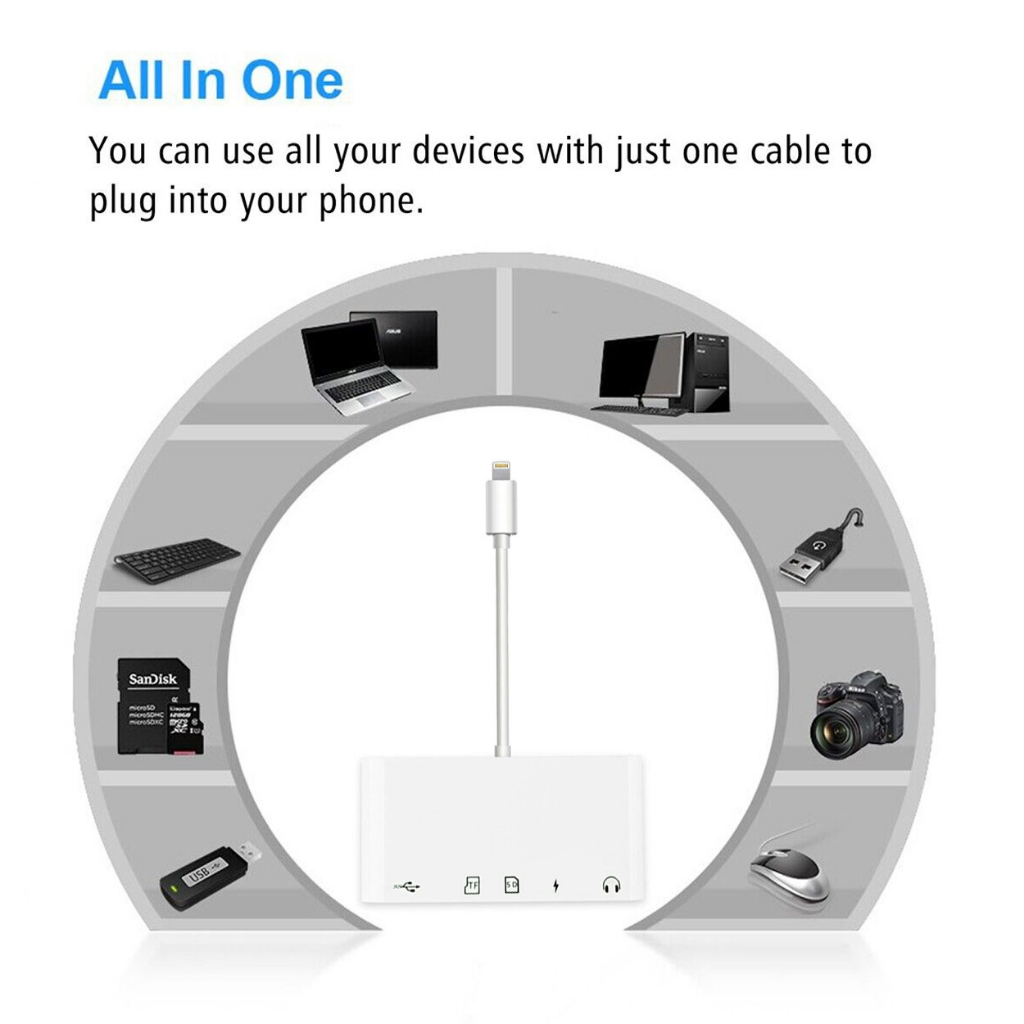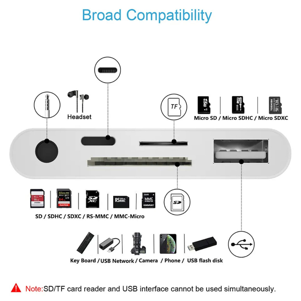 Lightning / Type-C USB OTG Adapter 3.5mm Headphone Jack Audio Connector SD/TF USB Card Reader