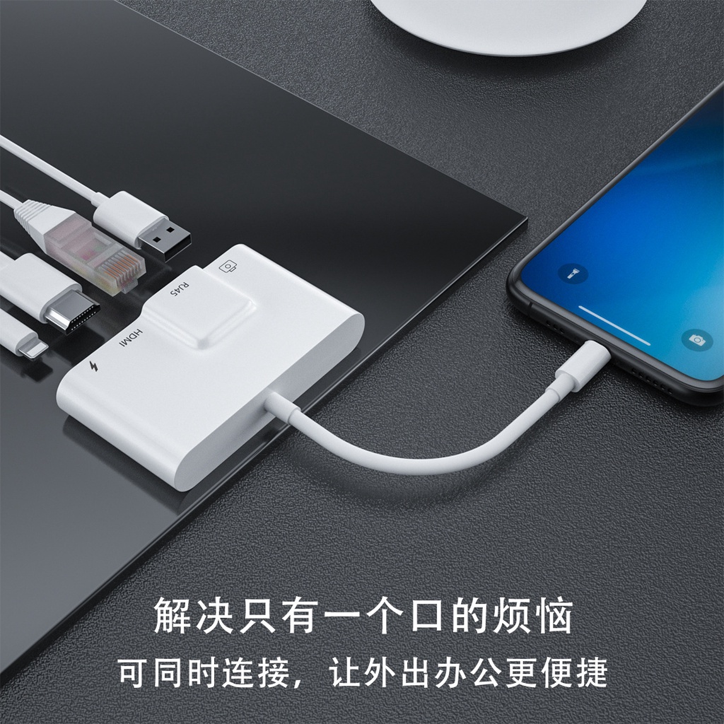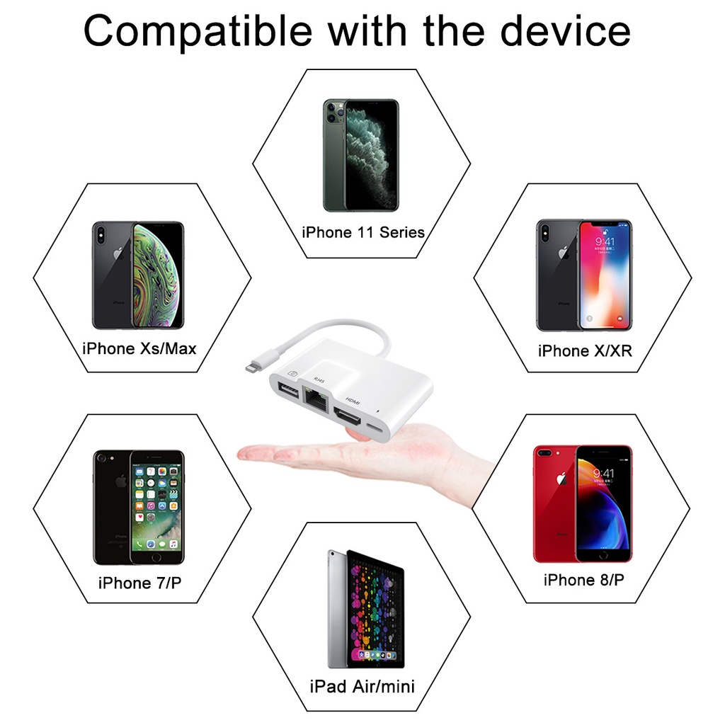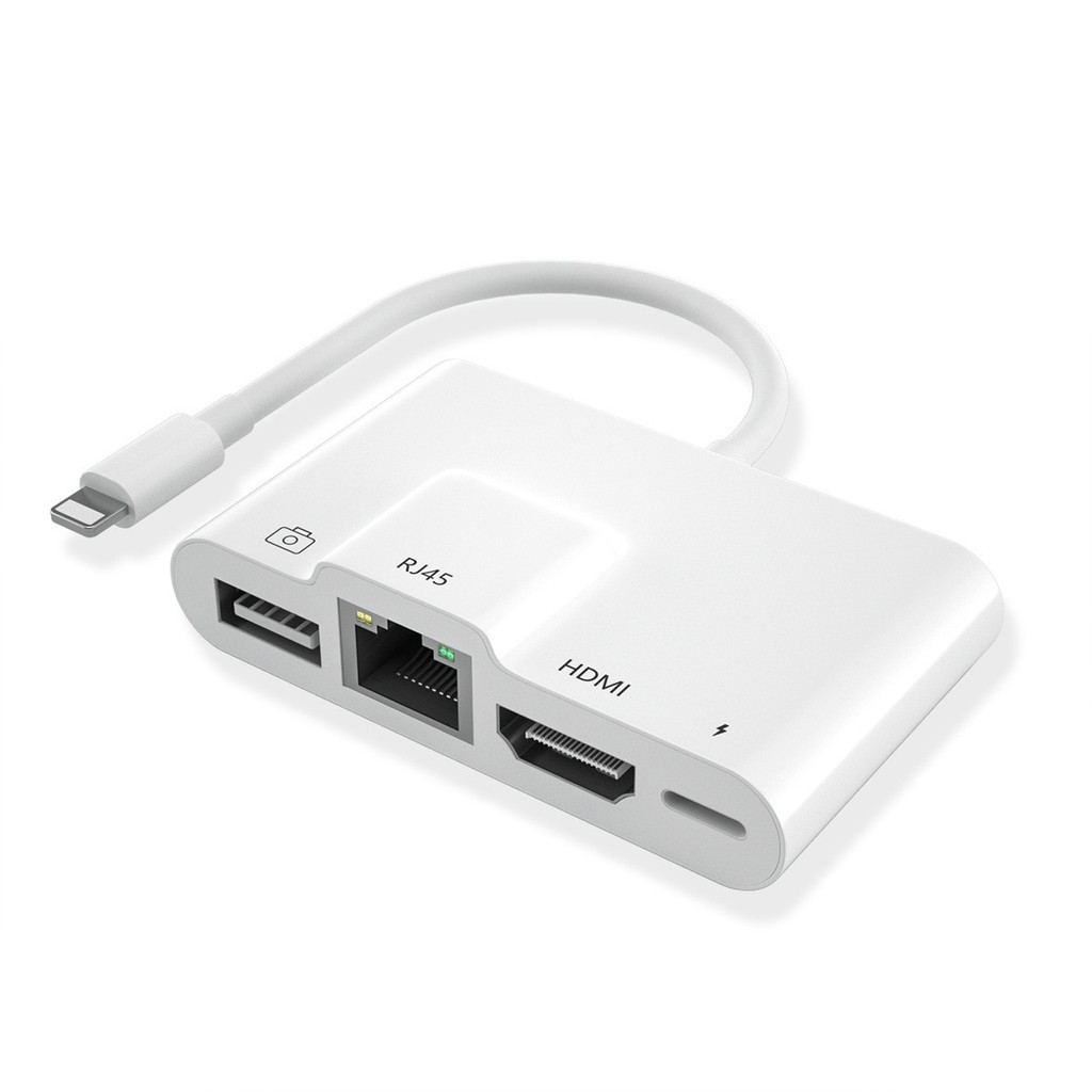 Lightning to 100Mbps Ethernet Lan RJ45 1080P HDMI USB OTG Camera Adapter Hub For Phone