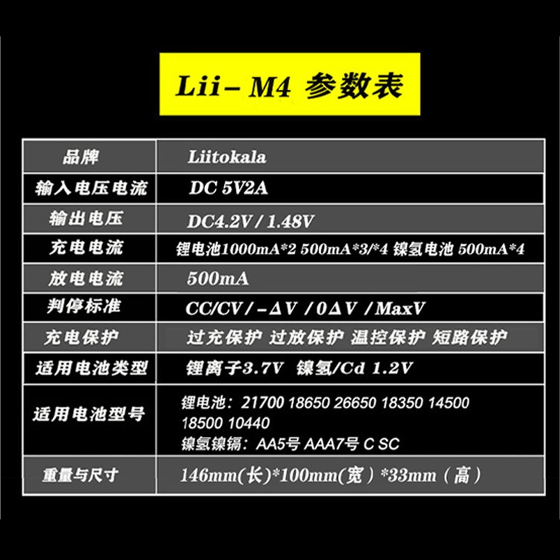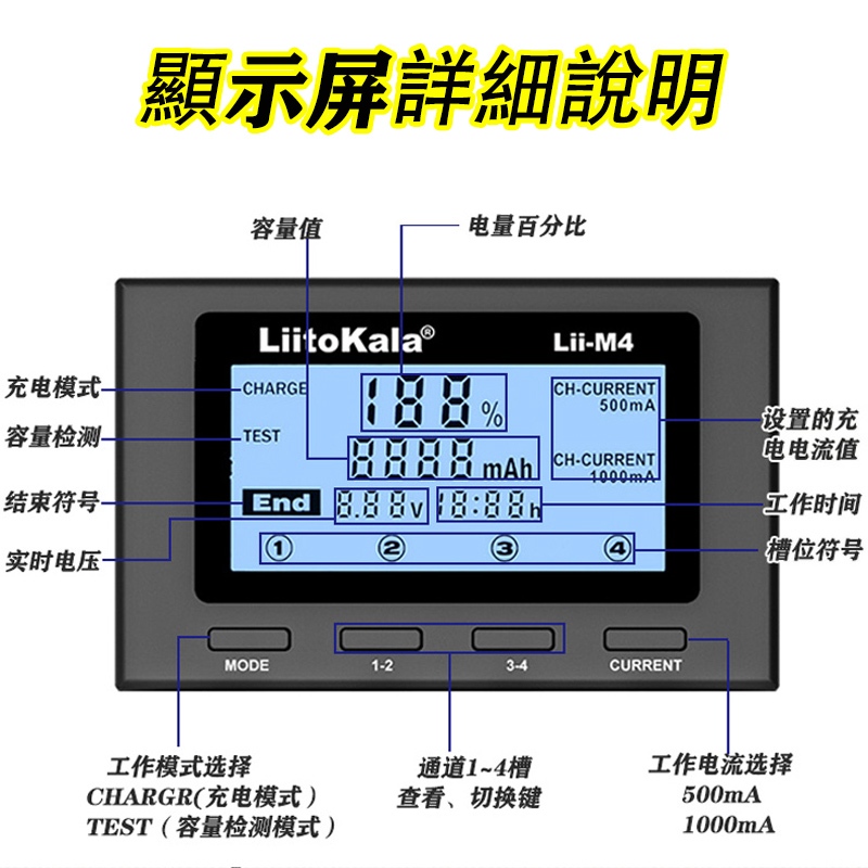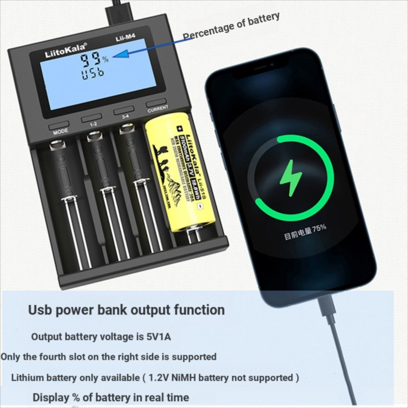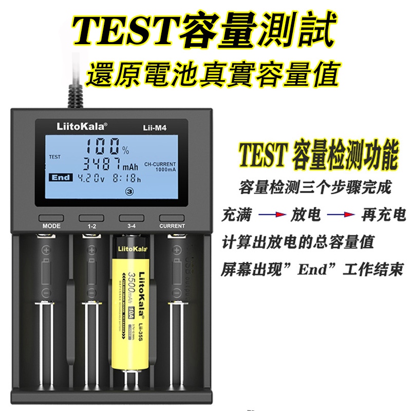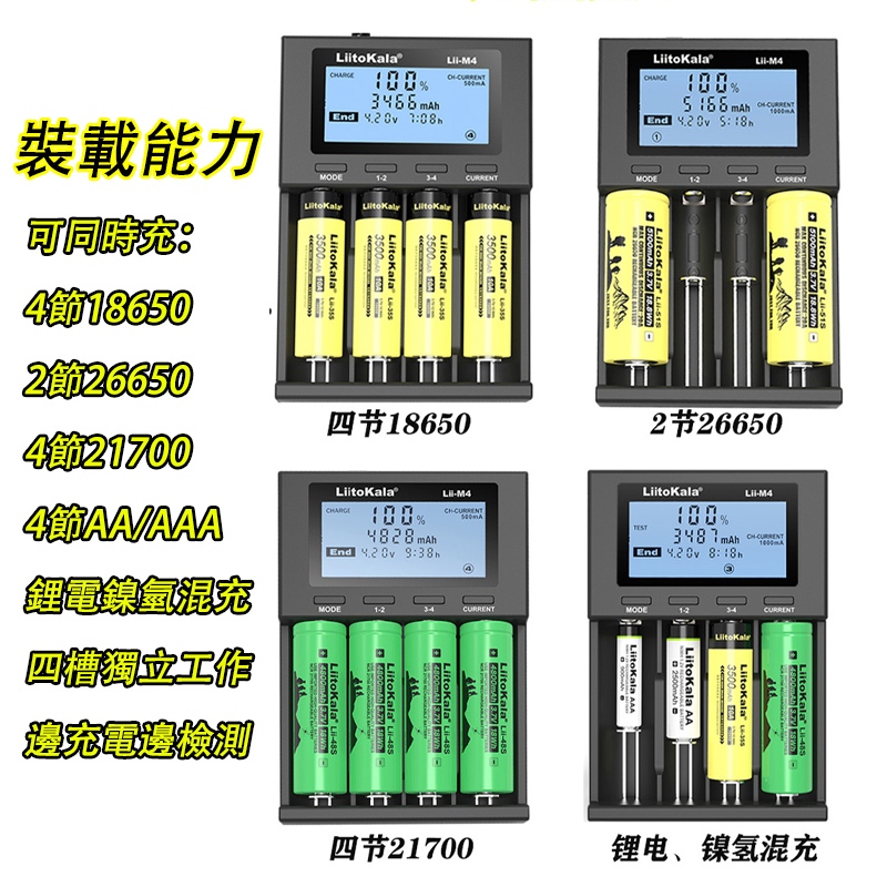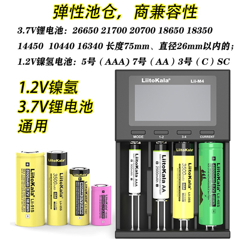 Liitokala Lii-M4 Charger 18650 Lithium Battery 26650 21700 18500 16340 No. 3 No. 4 Battery Charger