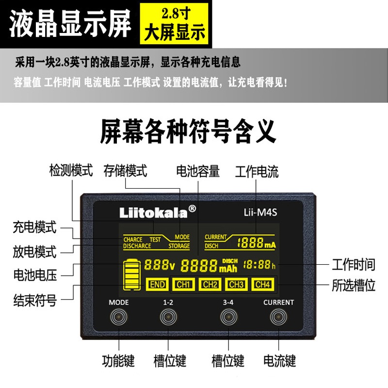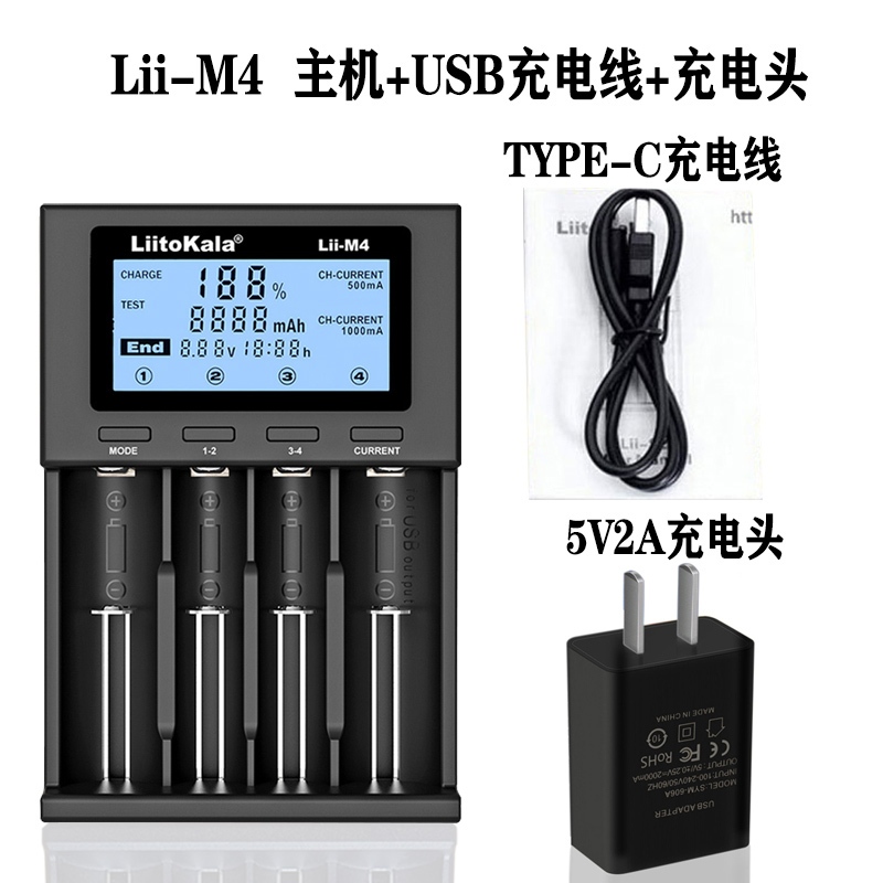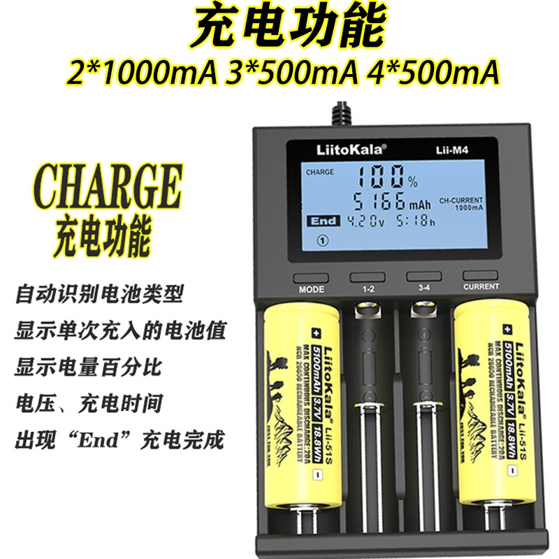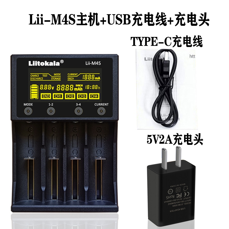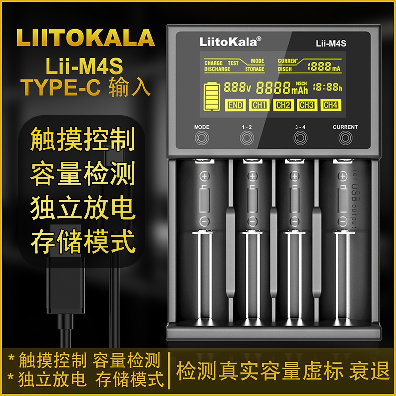 Liitokala Lii-M4S Lii-M4 Charger 18650 Lithium Battery 26650 21700 18500 16340 14500 No. 3 No. 4 Battery Toy Flashlight Battery Charger