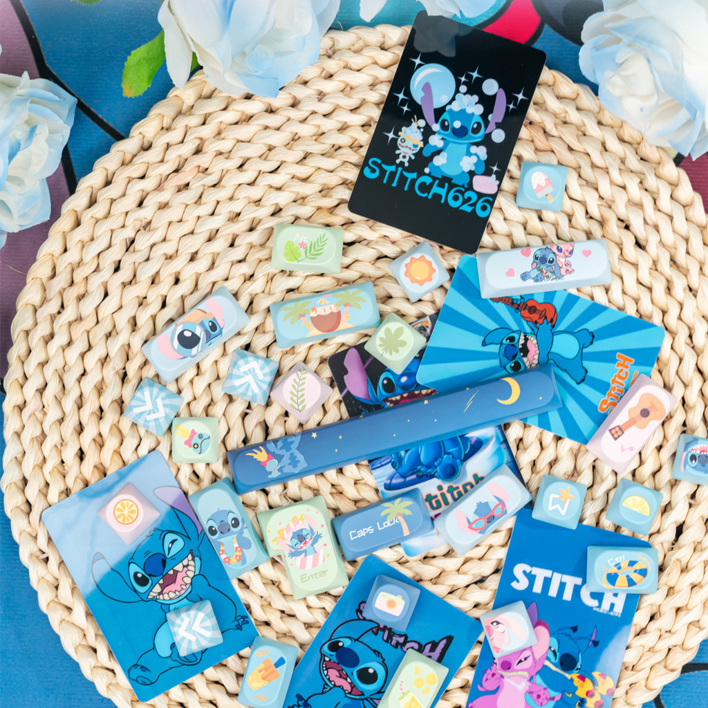 Lilo & Stitch Keycap MOA Profile PBT Five-sided Dye Sublimation Mechanical Keyboard Keycap 137 Keys Cute Cartoon Creative Stitch Angel Blue Kawaii Keycap Set