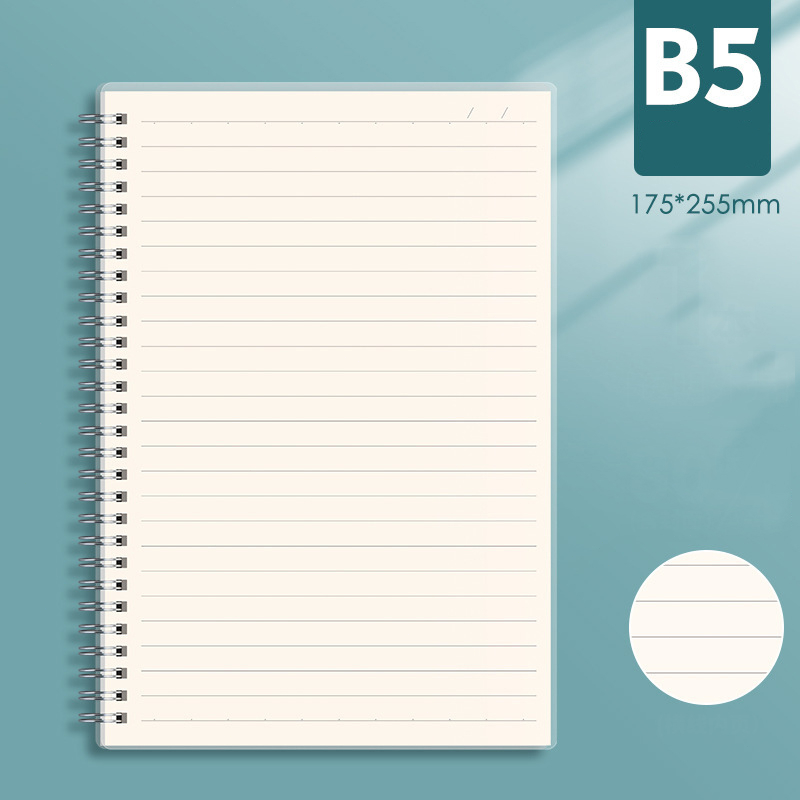 80sheets Lined Spring Notebook A4/B5/A5/B6 Blank Grid Steno Transparent Cover School Office Supplies