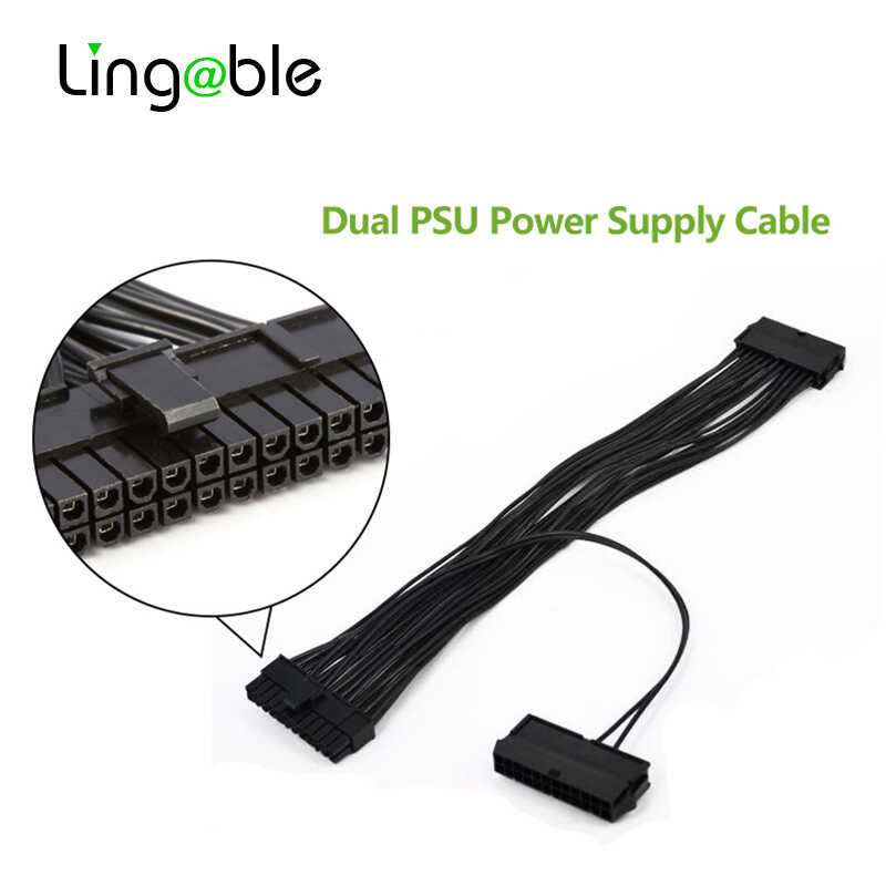 Lingable ATX 24 Pin Dual PSU Power Supply Extension Computer Adaptor Cable for motherboard 24Pin c