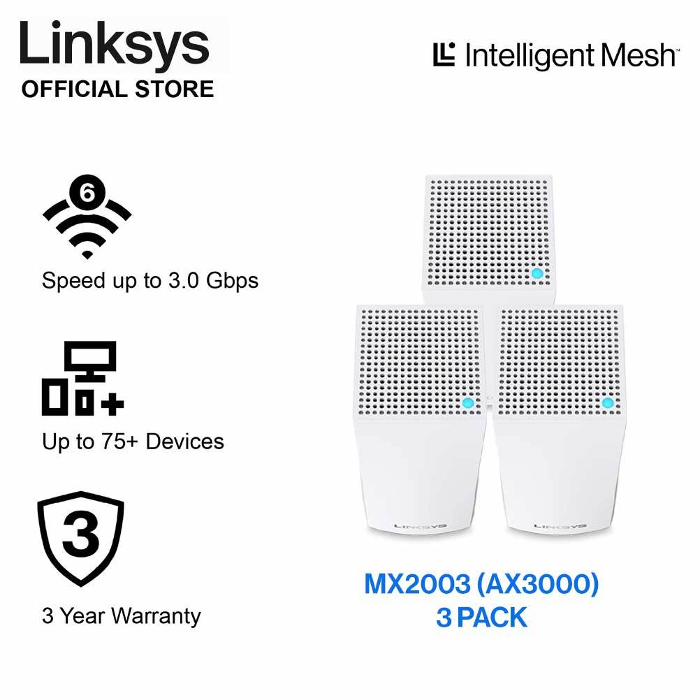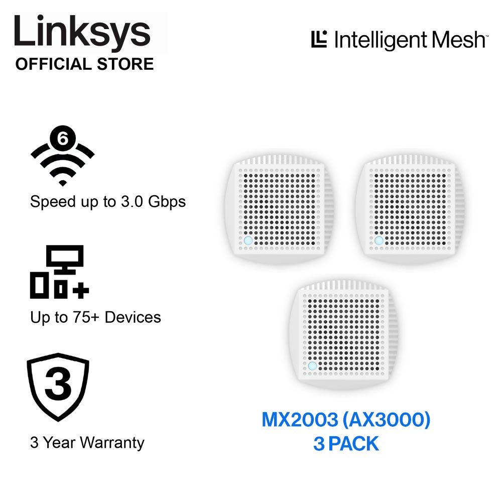 Linksys Atlas 6 AX3000 Dual Band Mesh WIFI6 System, 3 Pack (MX2003)