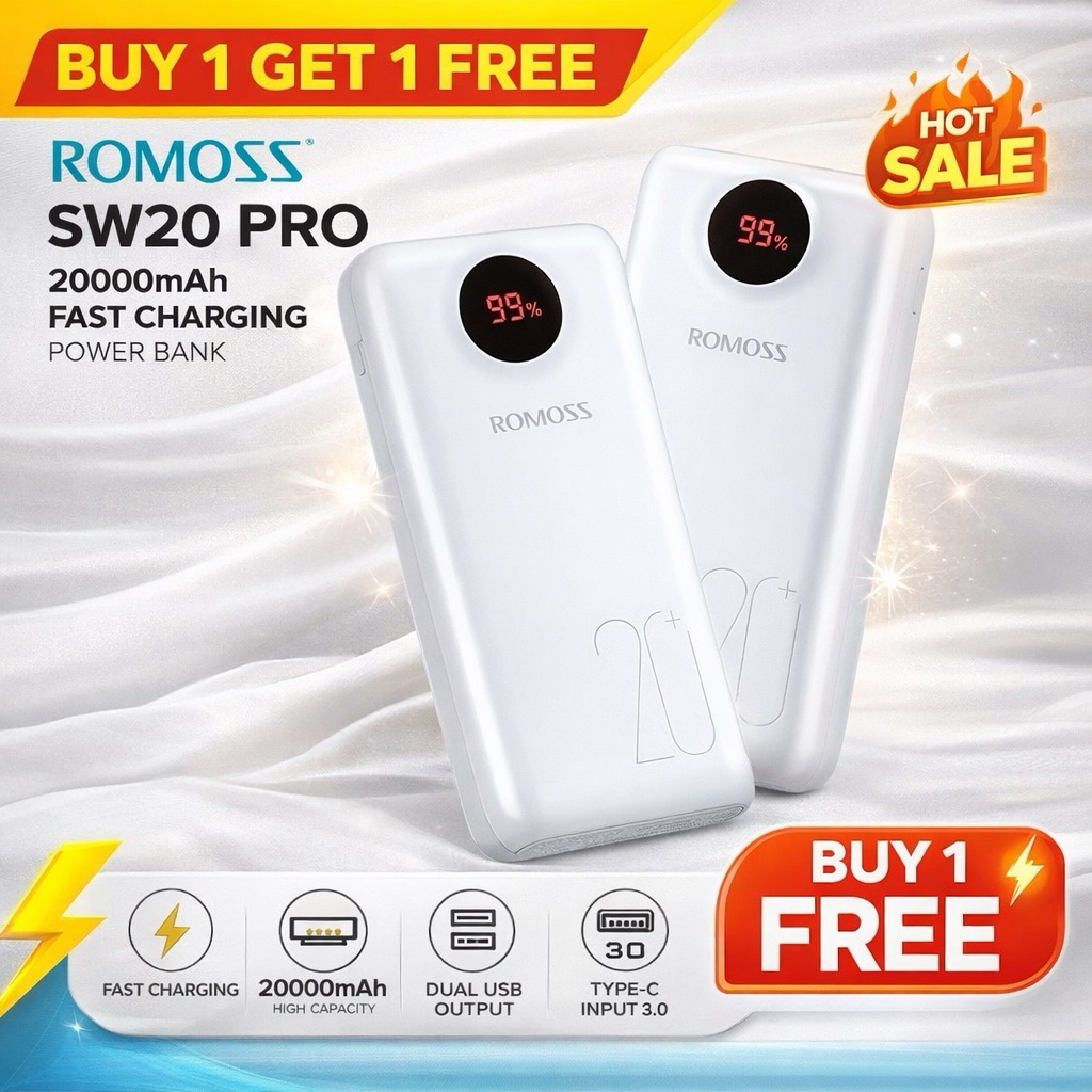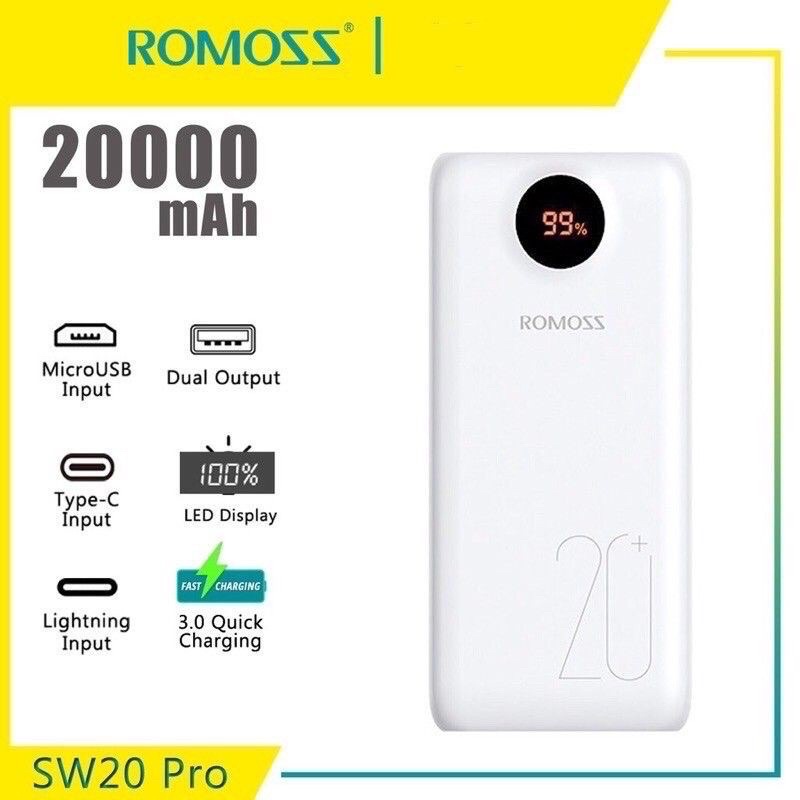 ROMOSS SW20 Pro 20000mAh Power Bank Fast Charging Dual USB Type-C Portable Charger LED Display