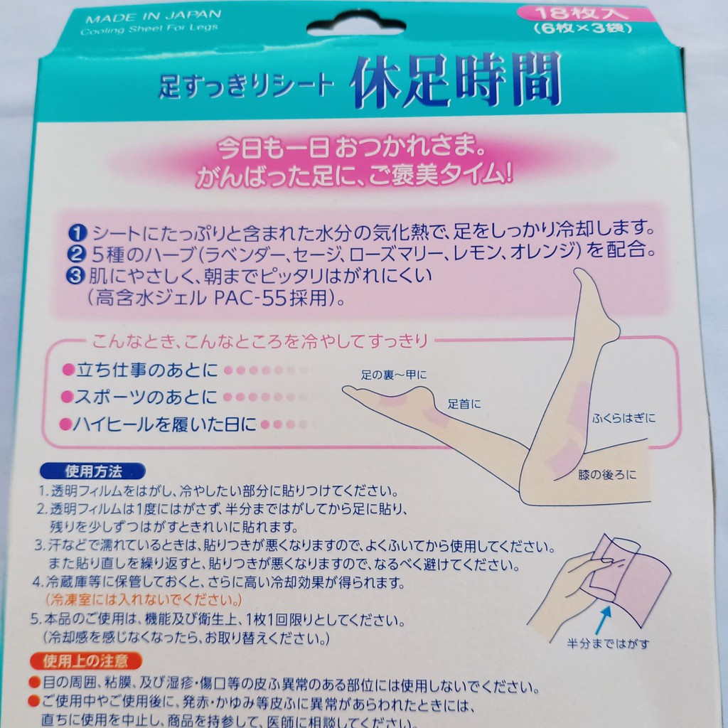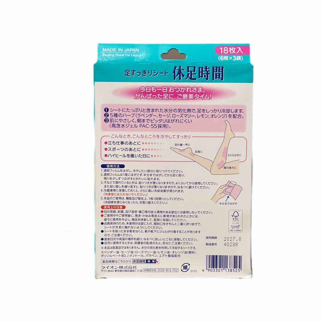 Lion Japan Leg and Foot Cooling gel patch (18 patches)