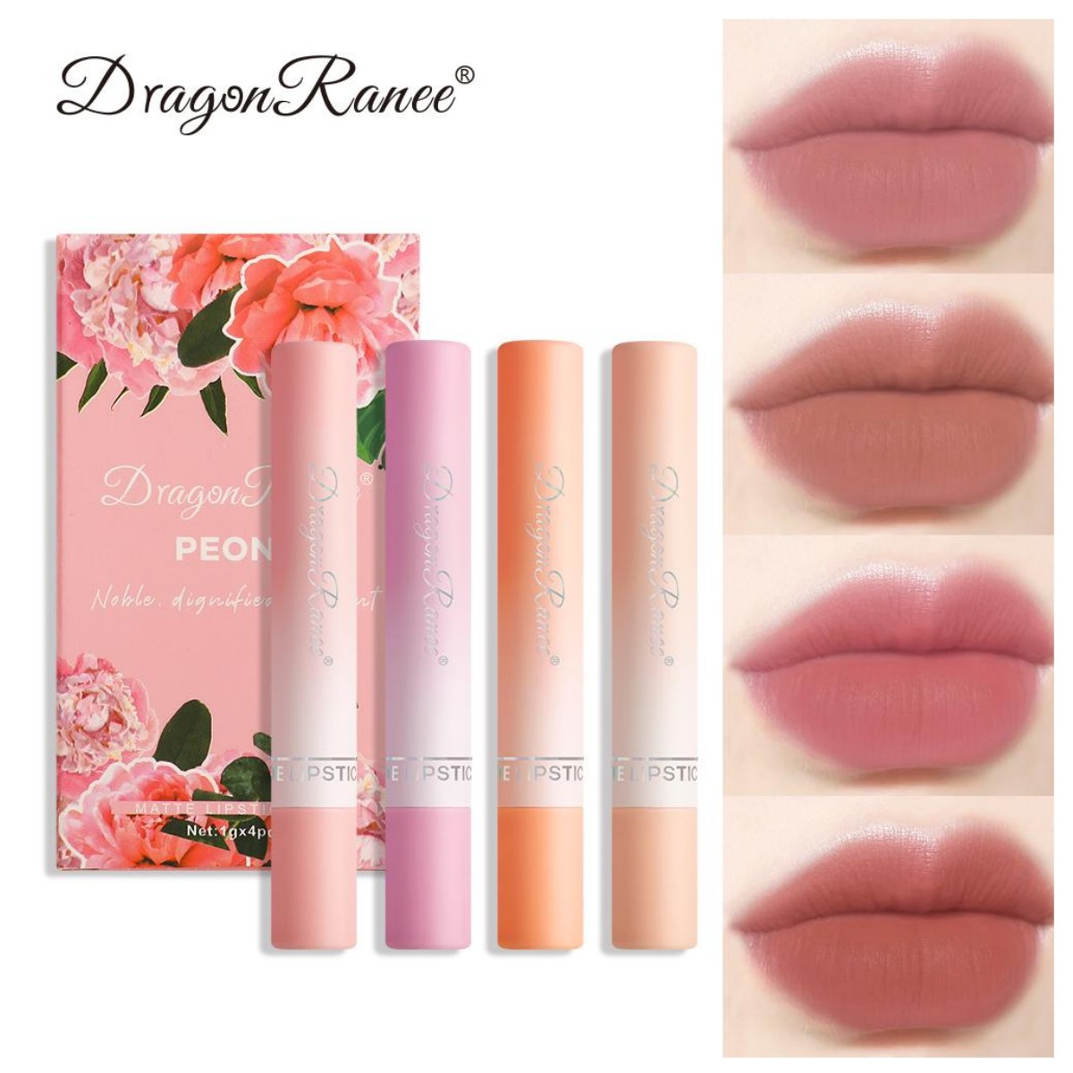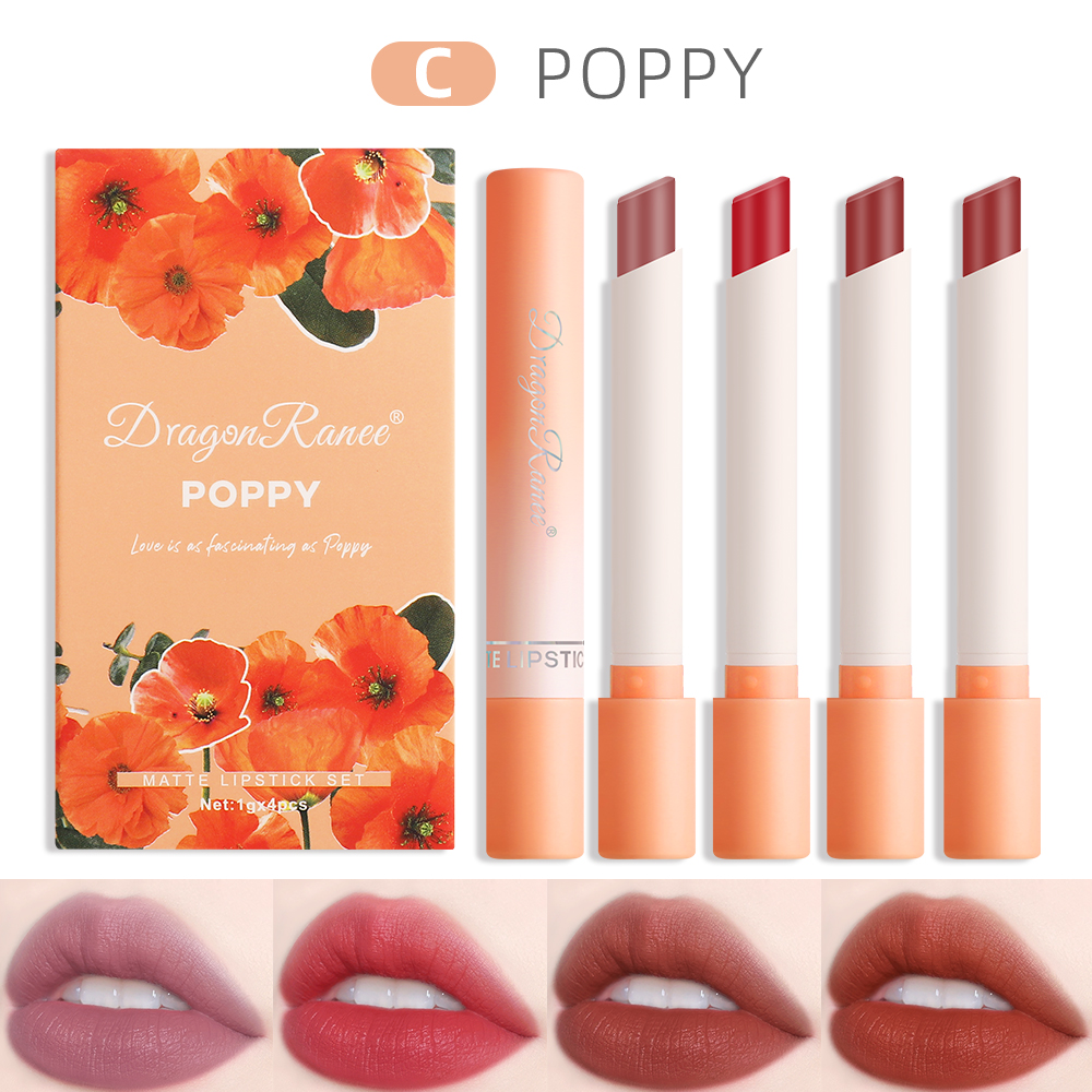 Dragon Ranee Four Lipstick Box Set With Matte Delicate Natural Waterproof And Long-Lasting Finish