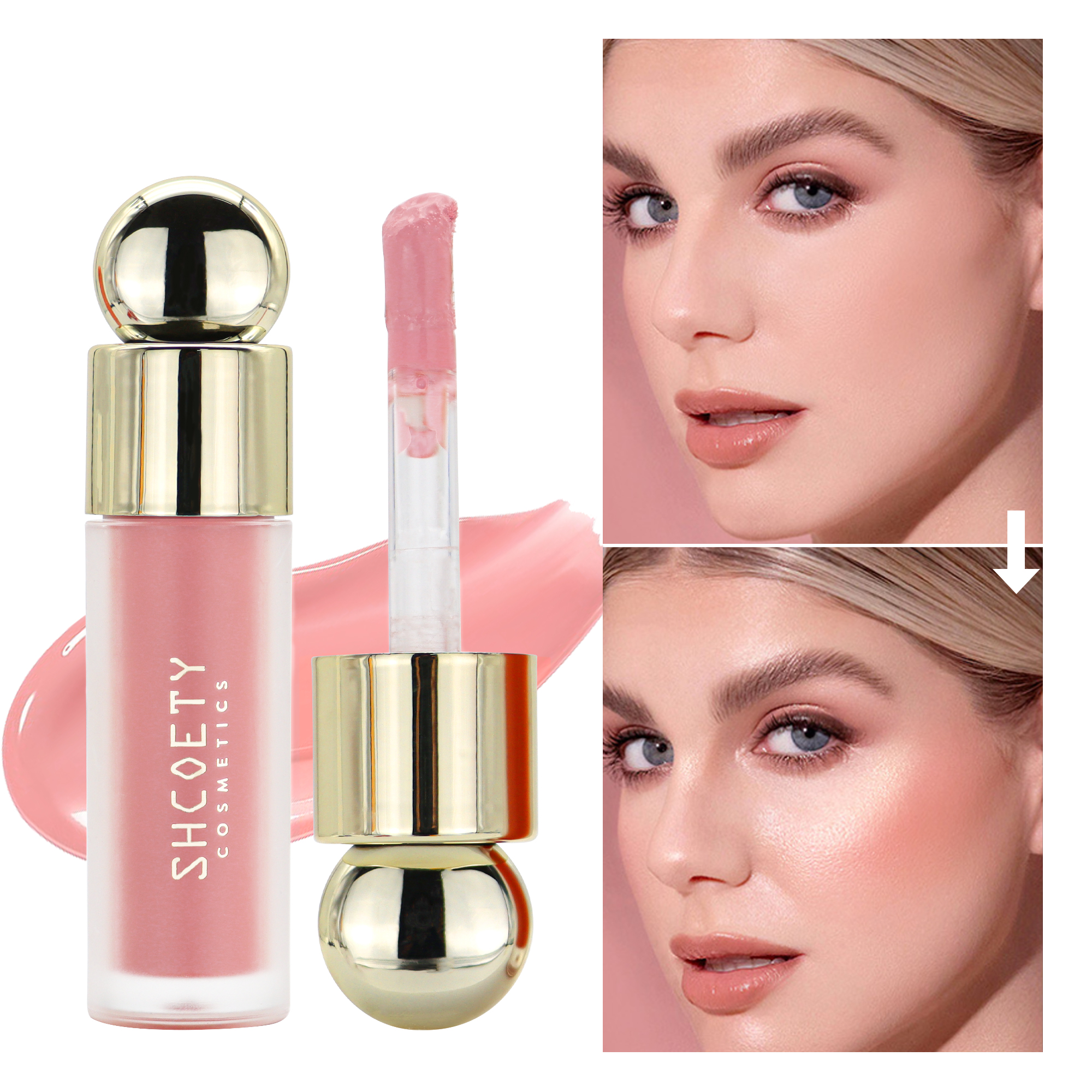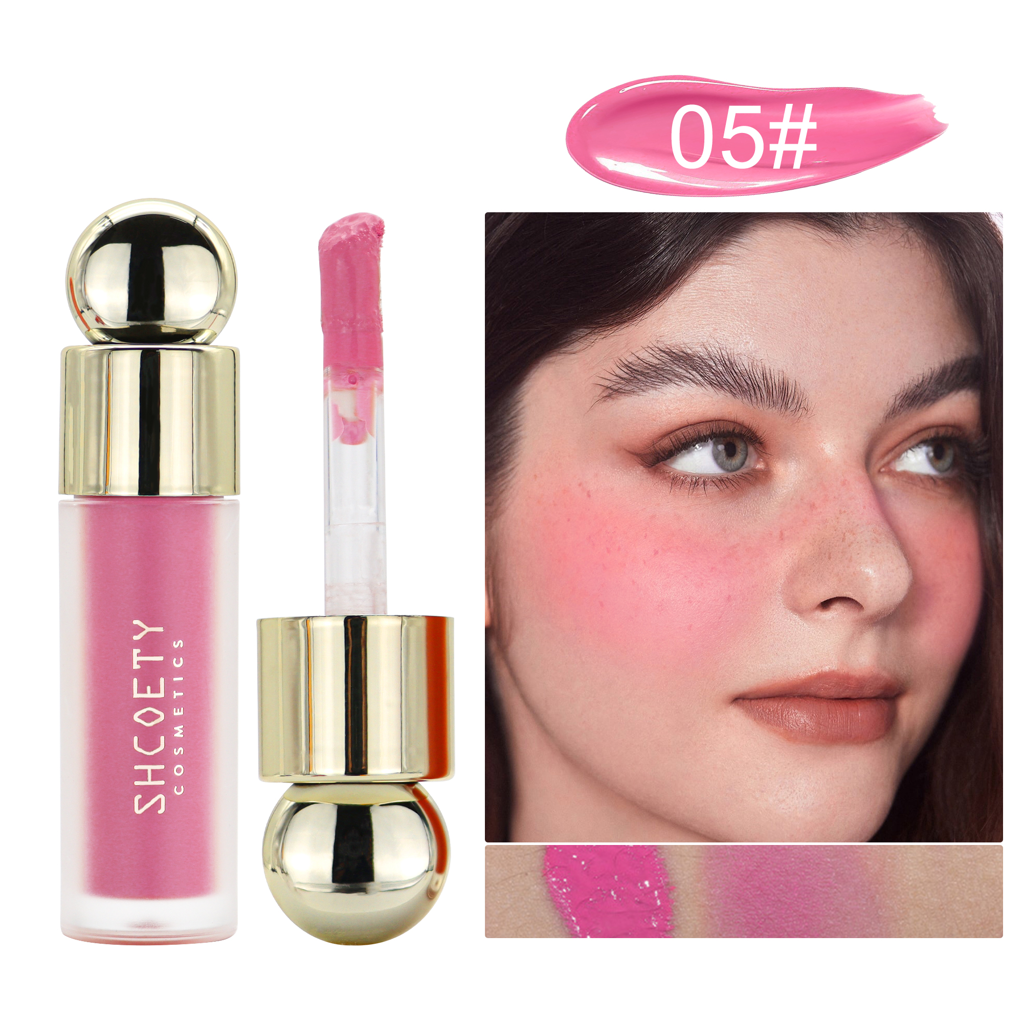 Liquid blush for lips and cheeks, facial retouching, brightening and skin color correcting liquid blush