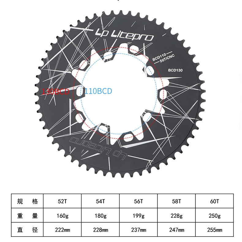 Litepro Folding Bike Road Bike Oval Chainring 110 130 Bcd 52T 54T 56T 58T 60T Bicycle Chainwheel Crankset Sprocket
