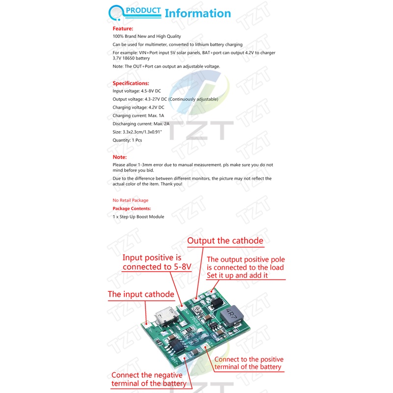 Lithium Li-ion 18650 3.7V 4.2V Battery Charger Board DC-DC Step Up Boost Module TP4056 DIY Kit Parts