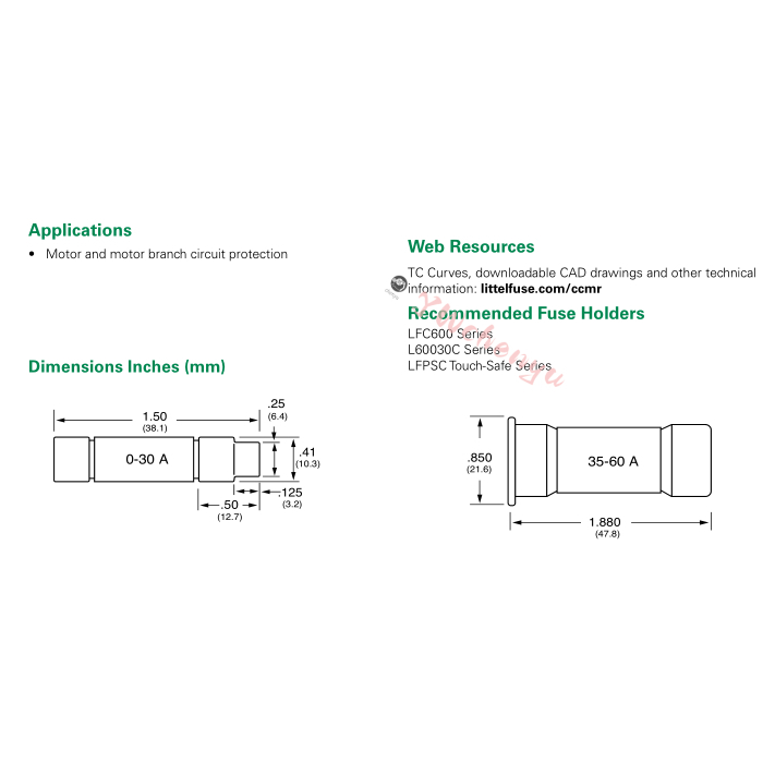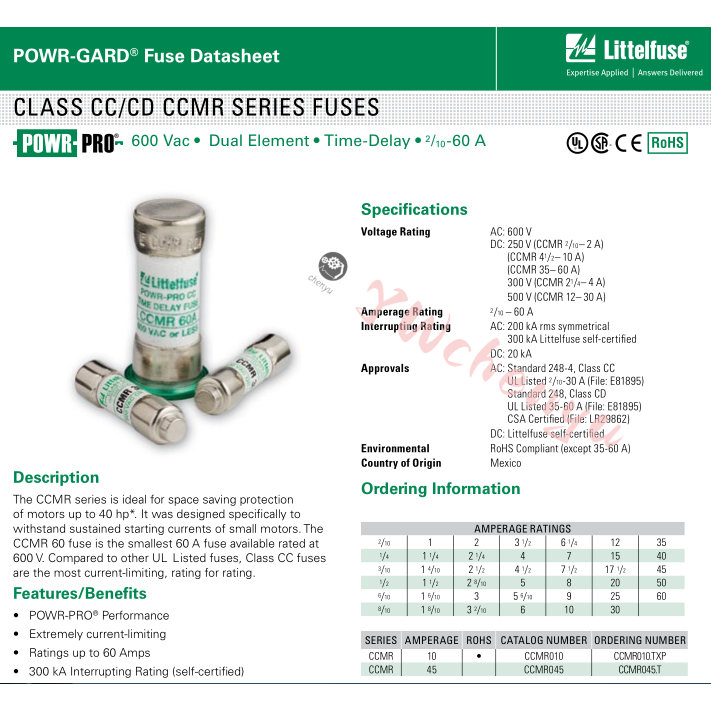 Littelfuse CCMR Fuses 1A 2A 3A 4A 5A 6A 8A 10A 15A 20A 25A 30A 600V 10*38mm