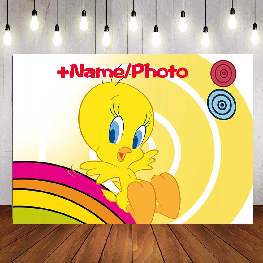 Little Cute Tweety Bird Birthday Backdrop For Photography Baby Shower Kids Birthday Yellow Background Birthday Party Decor Custom Name Photo