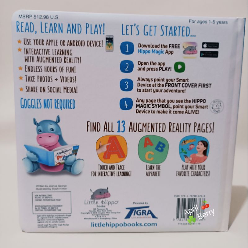 Little Hippo Children's Book - Let's Learn Alphabet ABC - Board Book - 4D Augmented Reality