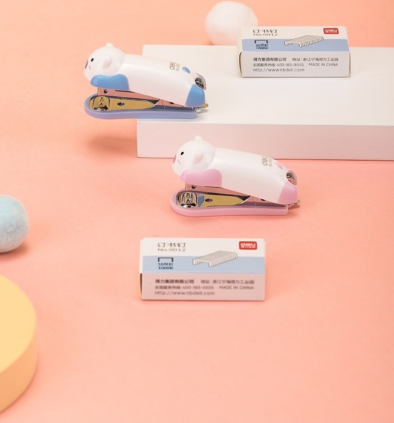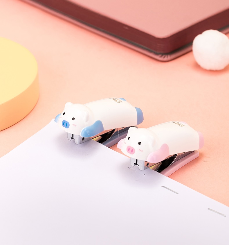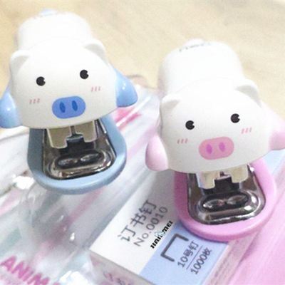 Little Pig Cartoon Mini Stapler Set Office Stationery Piggy lovely design gift for kids students small stapler Blue Pink