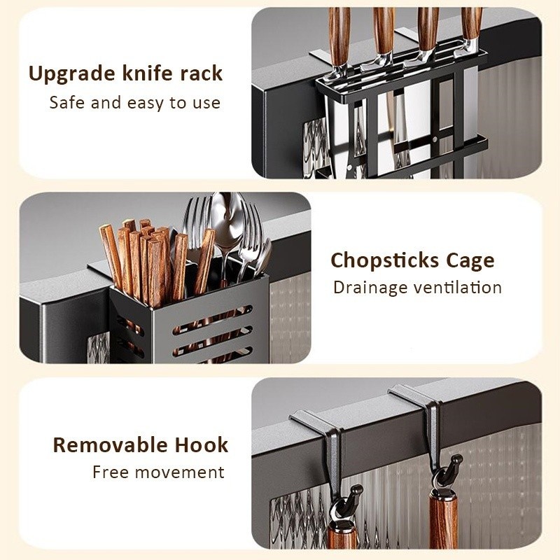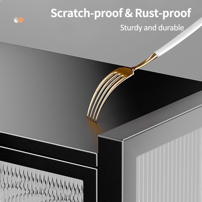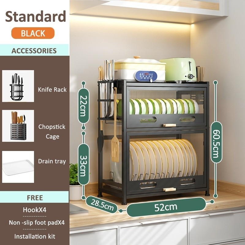 LivinEase Dish Storage Cabinet Pullable Rack Detachable Water Tray Transparent PC Door Wood Handle With Drawer