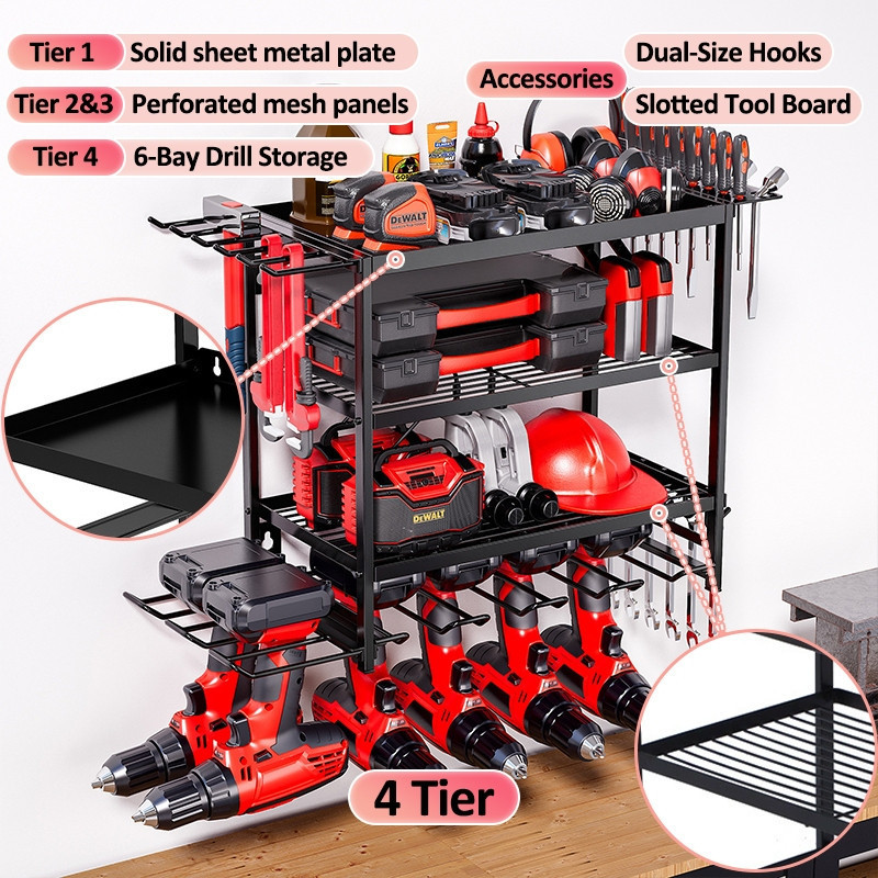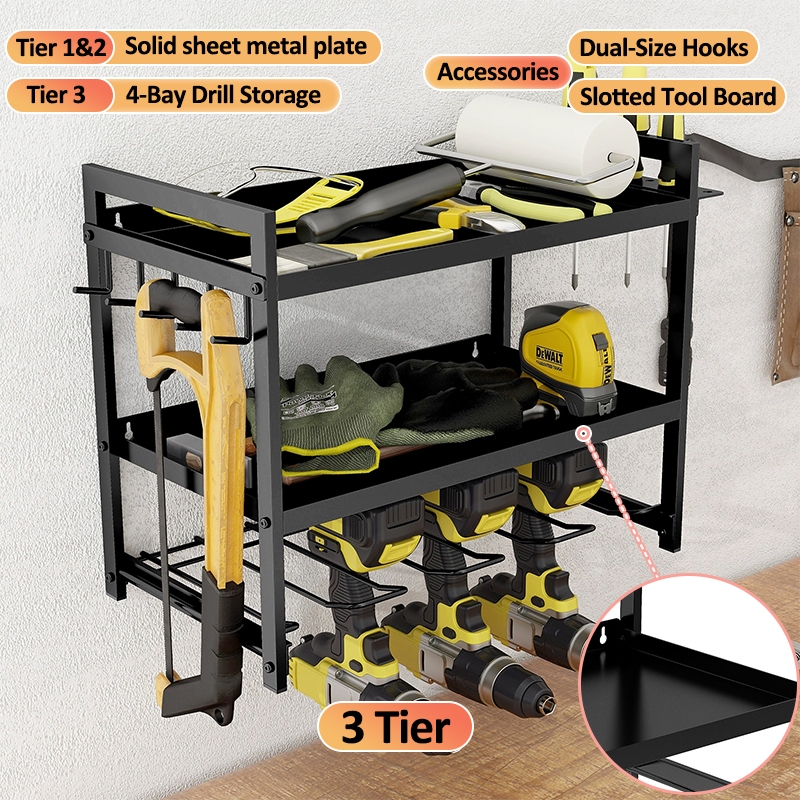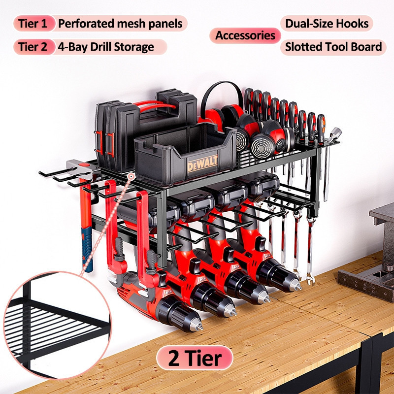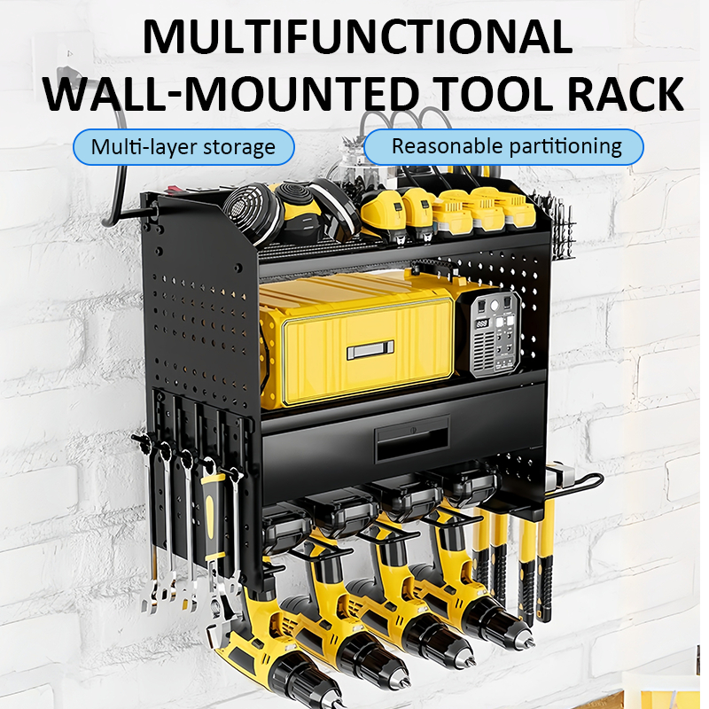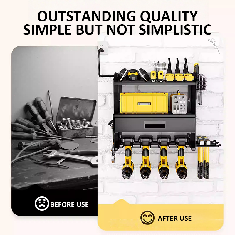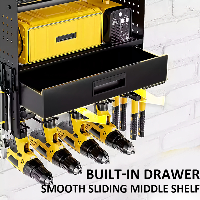 LivinEase Multifunctional Wall Mounted Tool Rack With Built In Drawer For Easy Tool Organization