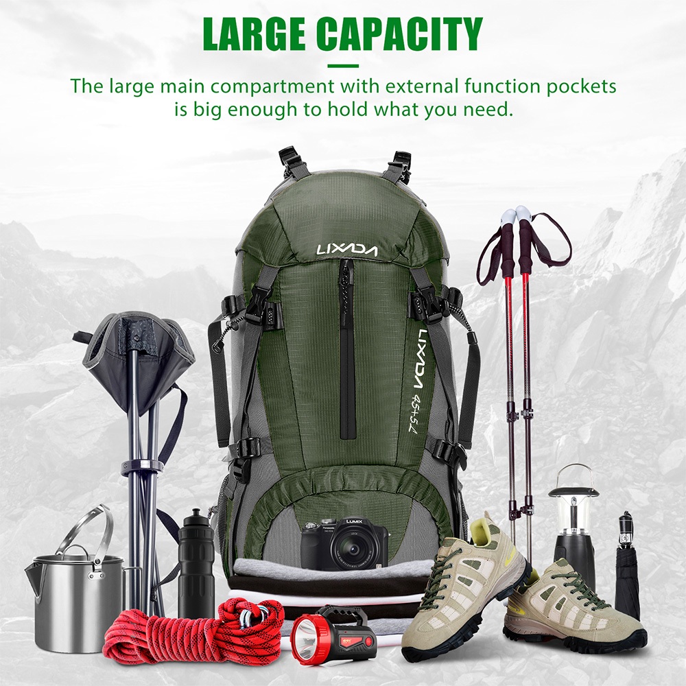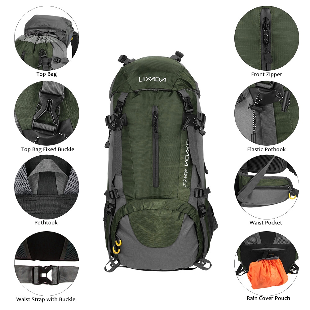Lixada Backpack 50 L Water Resistant Outdoor Sport Hiking Camping Travel Backpack Pack Mountaineering Climbing Backpacking Trekking Bag Knapsack with Rain Cover For Hiking Hobbies