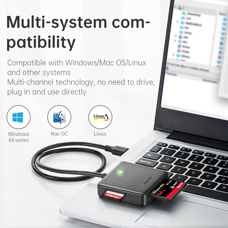 Llano 4 In 1 Card Reader Cf/TF/SD/Ms/Micro SD USB 3.0 With Type-C Converter All-In-One