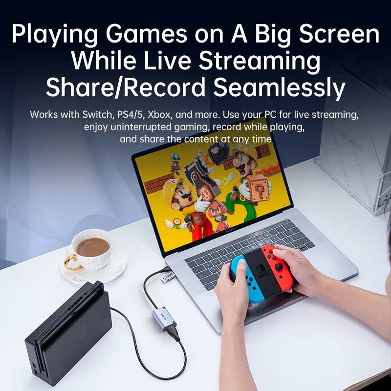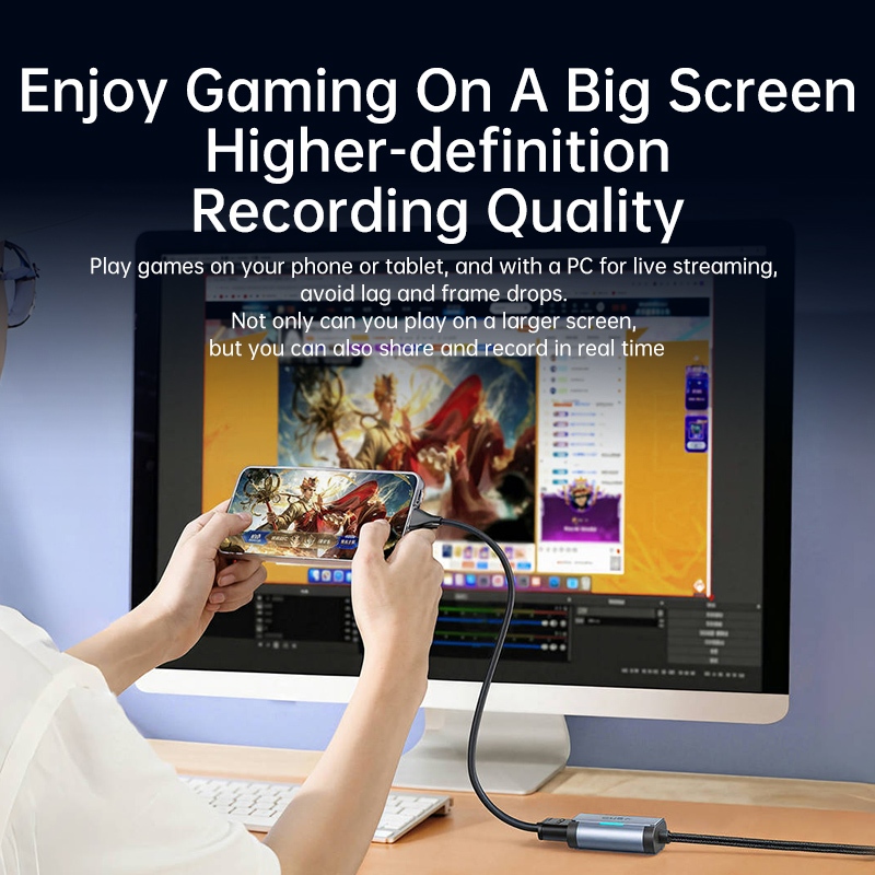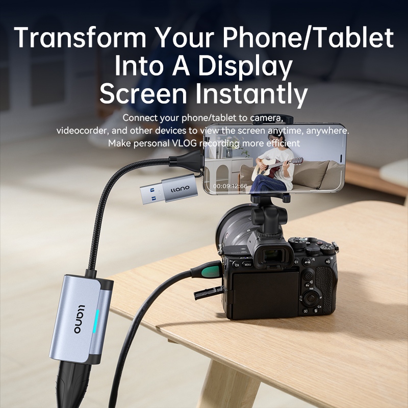 Llano Video Capture Card 2 in 1 USB C 3.0 Capture Card HDMI to USB C Audio Video Recording in 1080P@60Hz 2K@30Hz for Teaching Broadcasting Gaming Streaming Video Conference