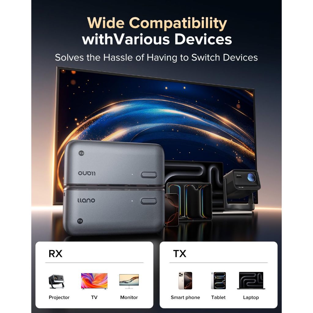 Llano S850 Wireless HDMI Transmitter and Receiver 1080P Wireless HDMI Extender Kit 2.4G/5G for Streaming Video Audio to Monitor for TV Box/PC/Laptop/HDTV/Projector