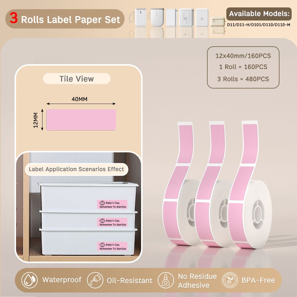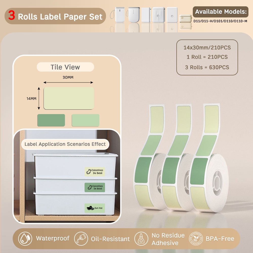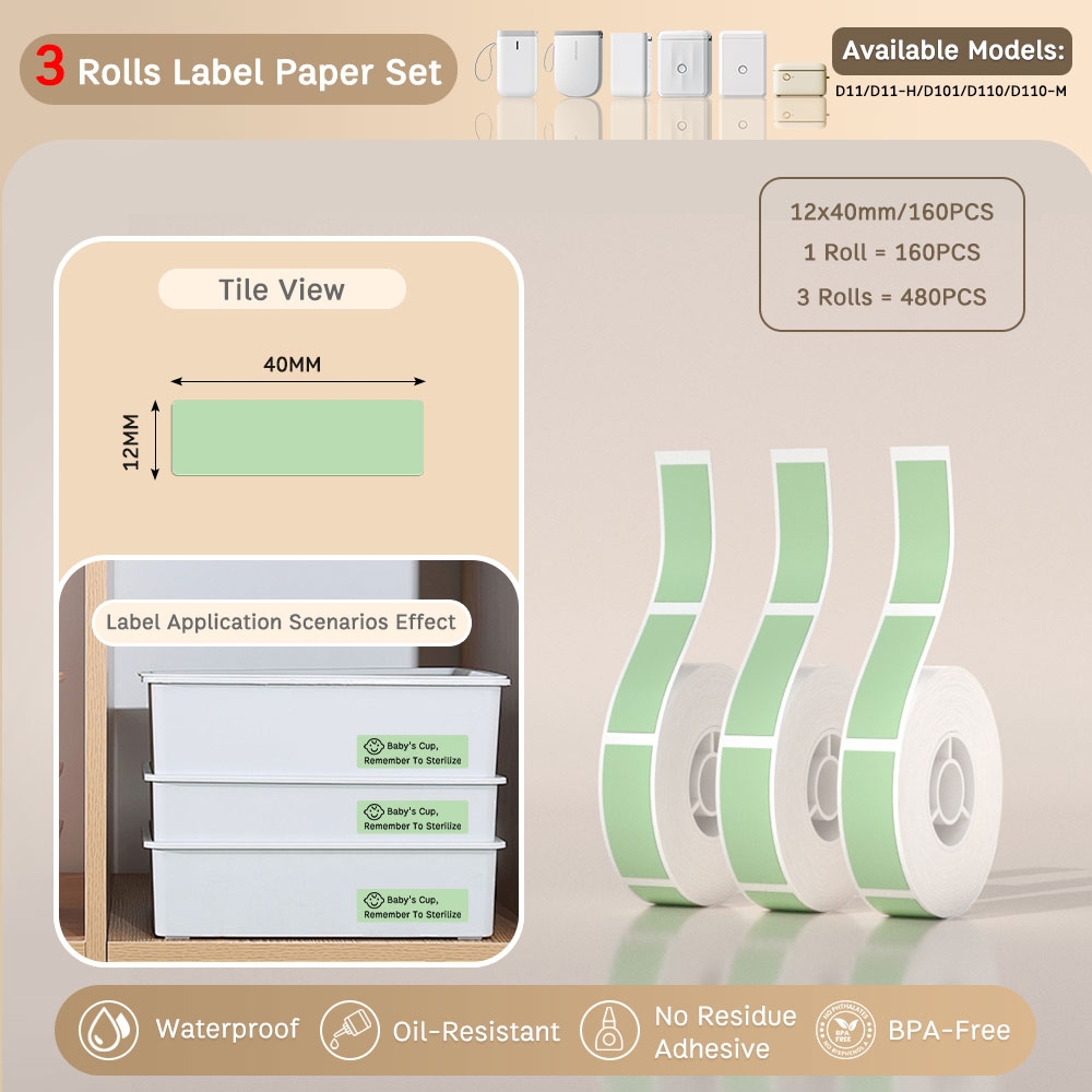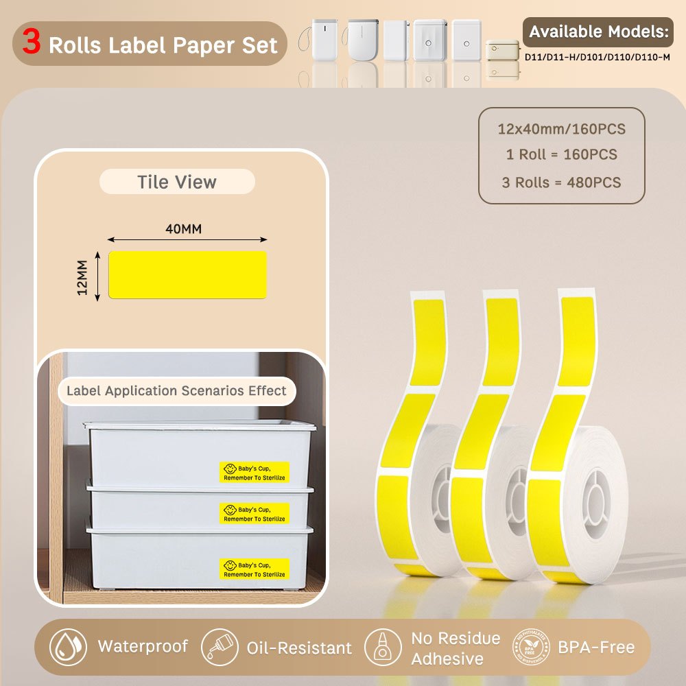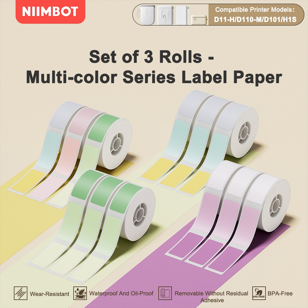 Local-[3 Rolls Set] NIIMBOT D11/D110/D101 Pure Color Label Stickers, Yellow/Green/Blue/Pink/Colorful