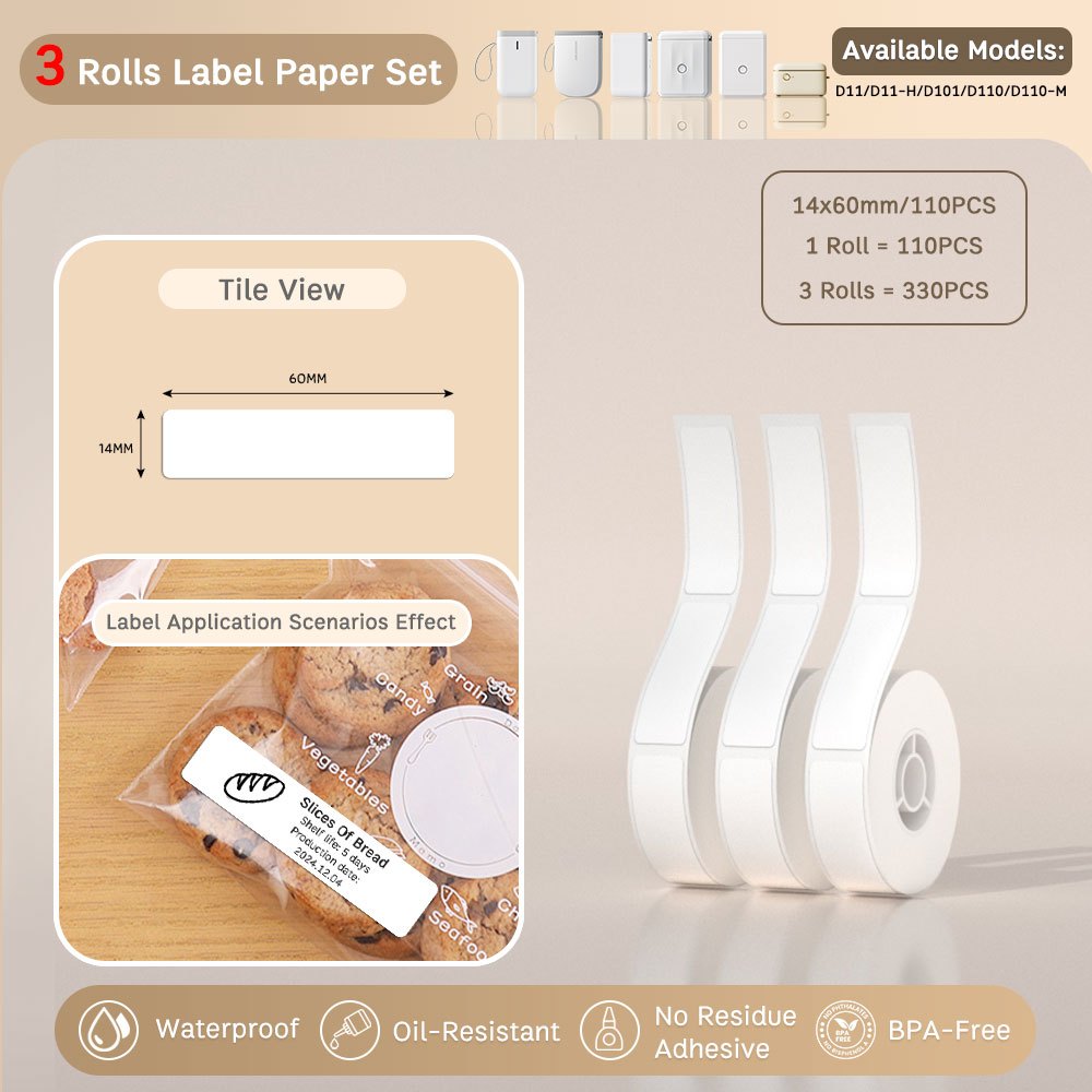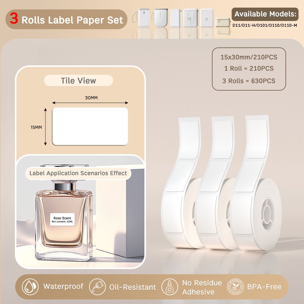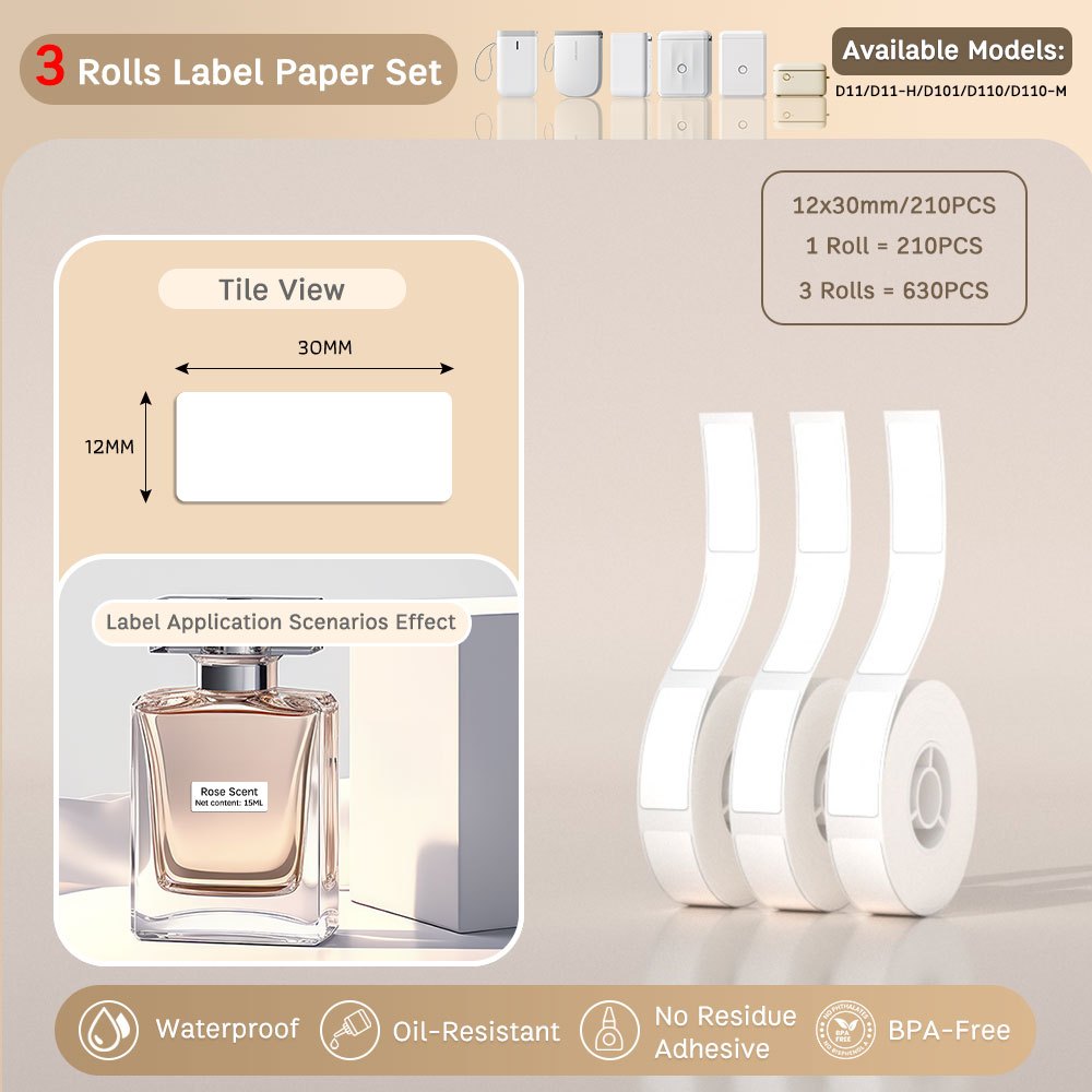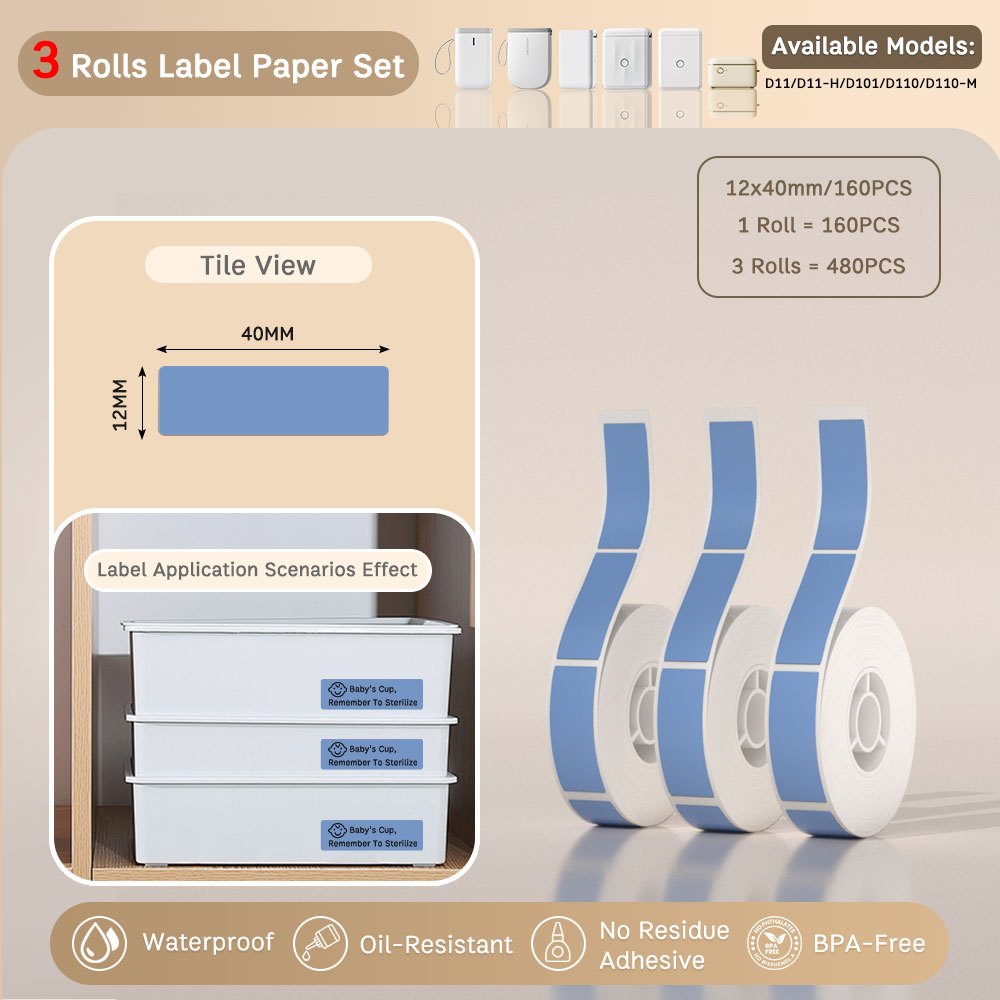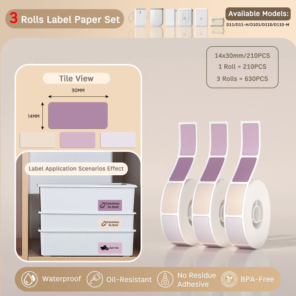 Local-[3 Rolls Set] NIIMBOT D11/D110/D101 Pure Color Label Stickers, Yellow/Green/Blue/Pink/Colorful