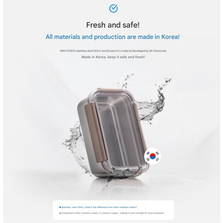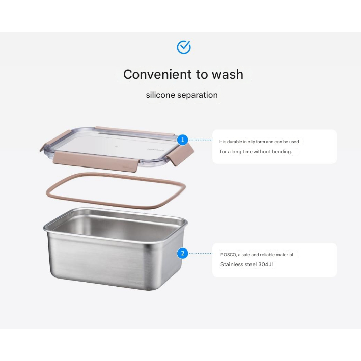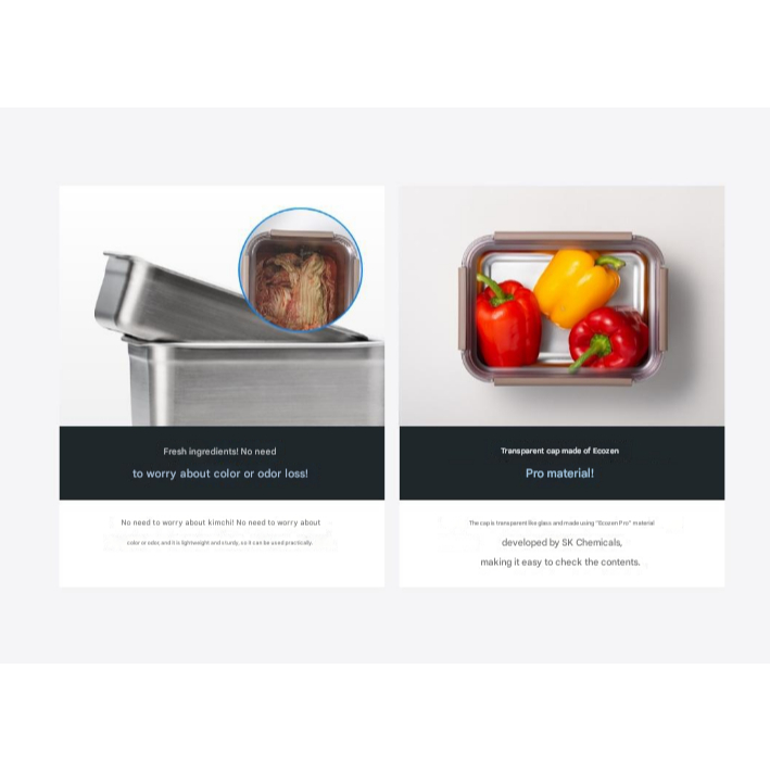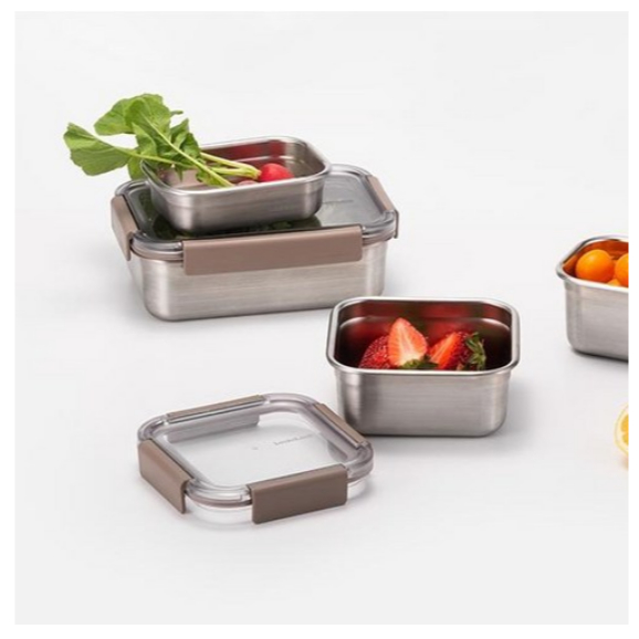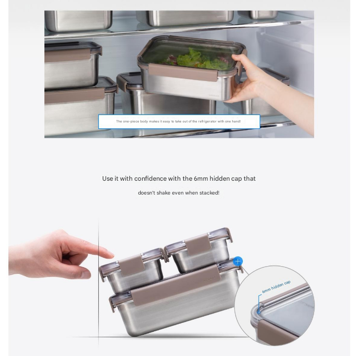 LocknLock Stainless Steel Korean Food Container (520ml, 2P) Modular Rectangular