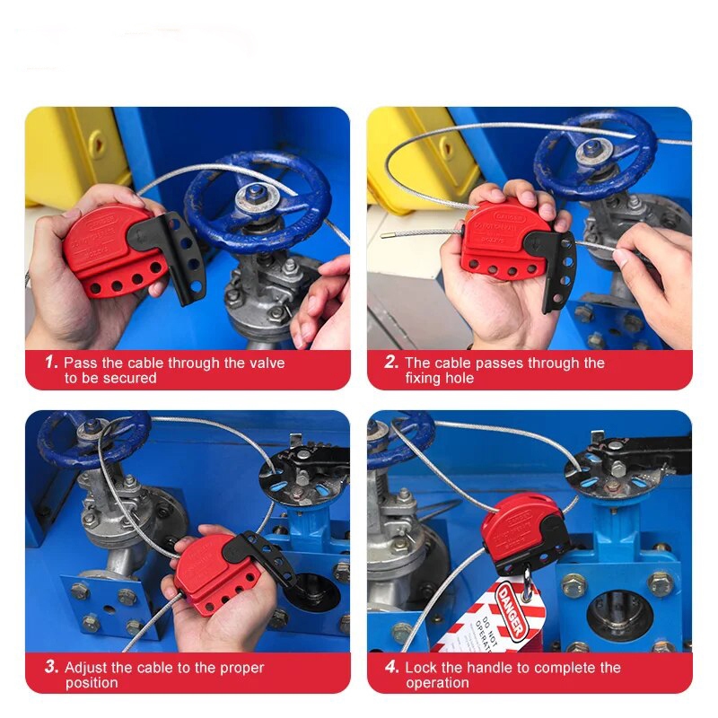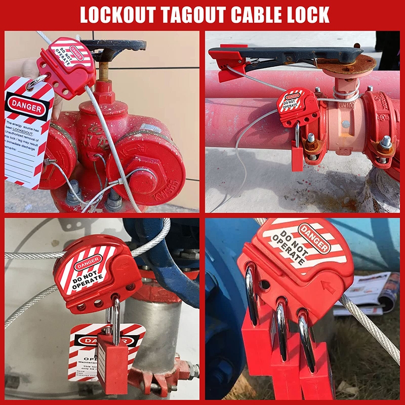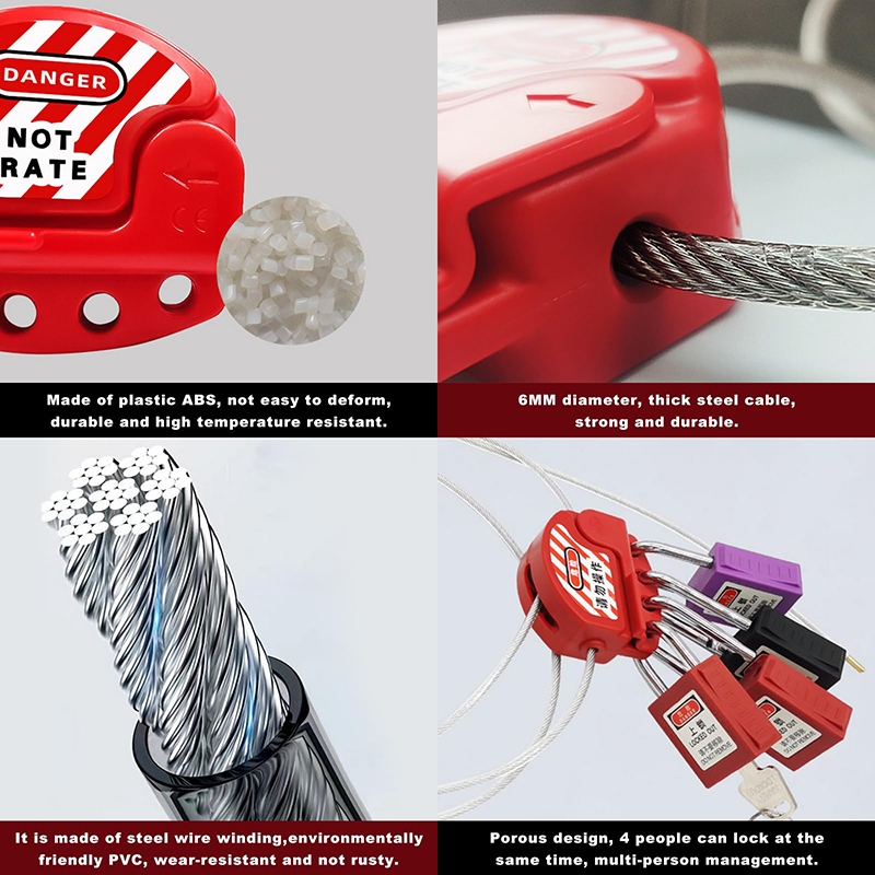 Lockout Tagout Cable Lock, 4mm 1.8m Adjustable Steel Vinyl Coated Cable Lockout