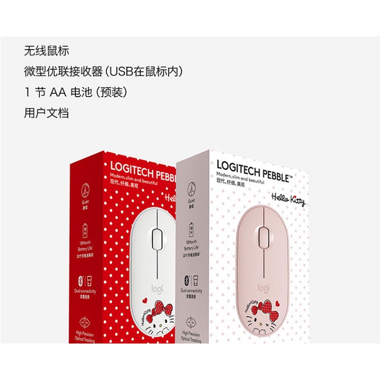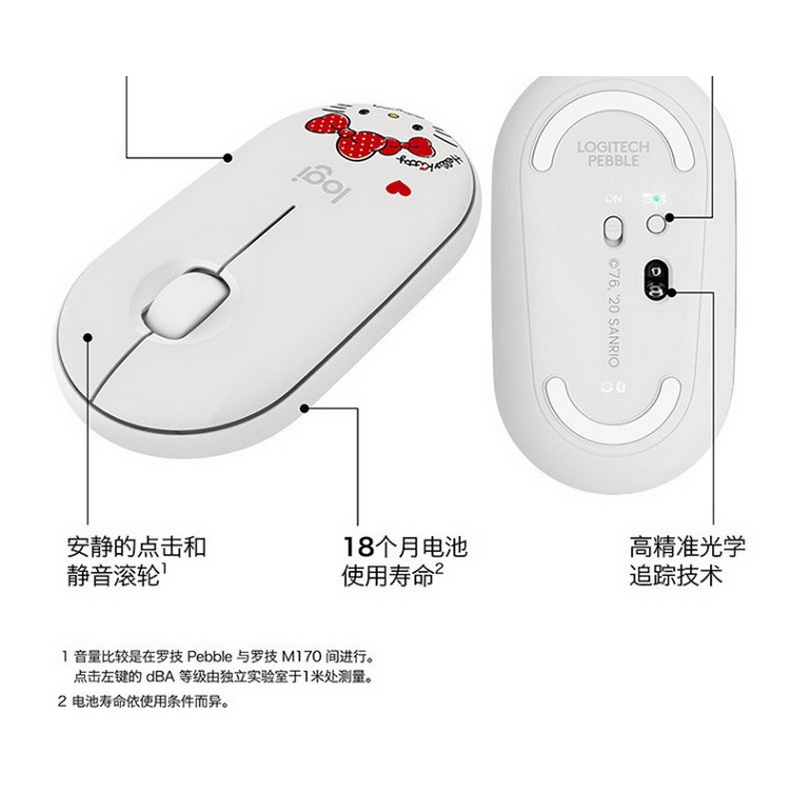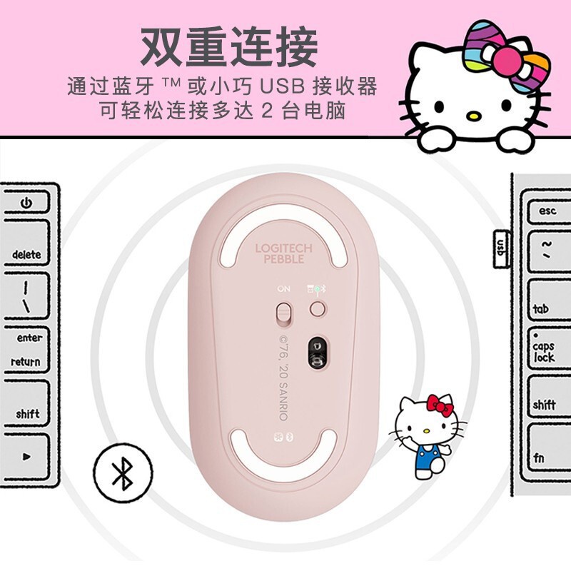 Logi Pebble Hello Kitty Wireless Mouse Bluetooth Mute Mouse Cute Cat Computer Mice