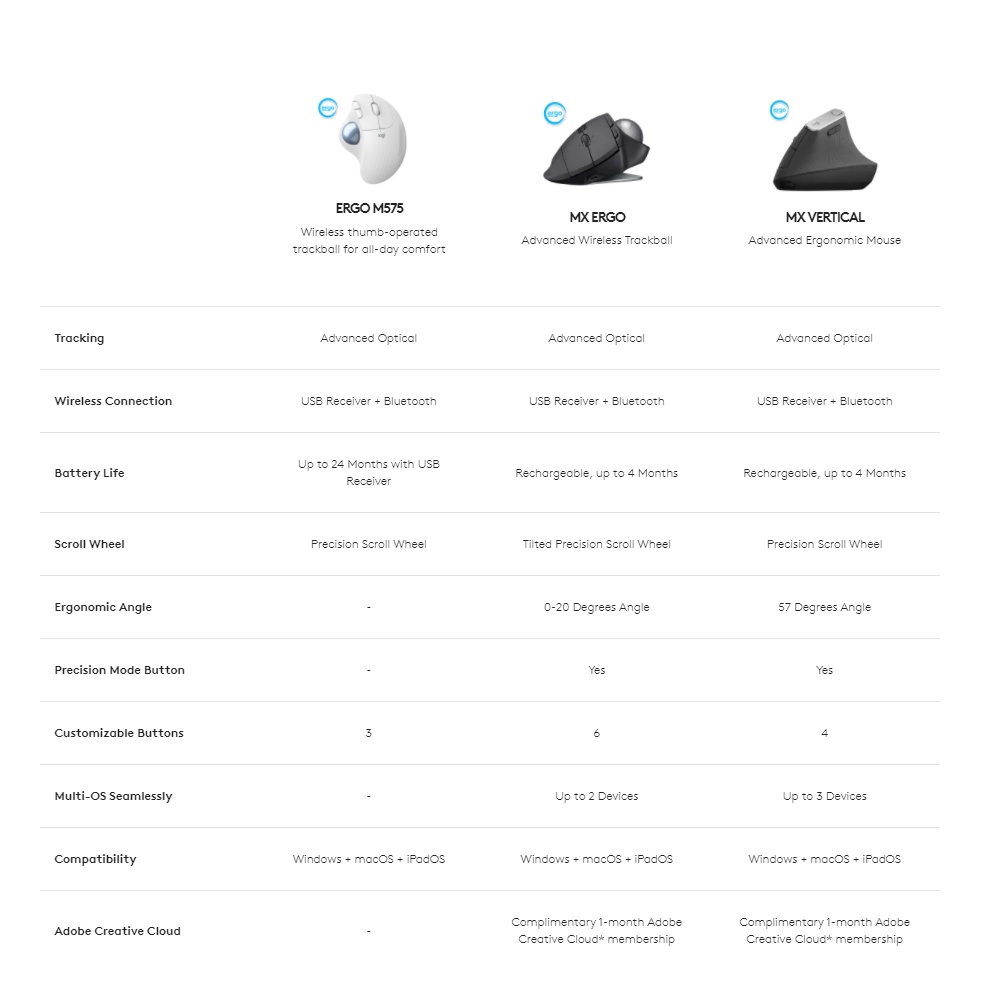 Logitech ERGO M575 Wireless Trackball Bluetooth Mouse with Precision Scroll Wheel ERGO Setup Onboarding Unifying USB Receiver